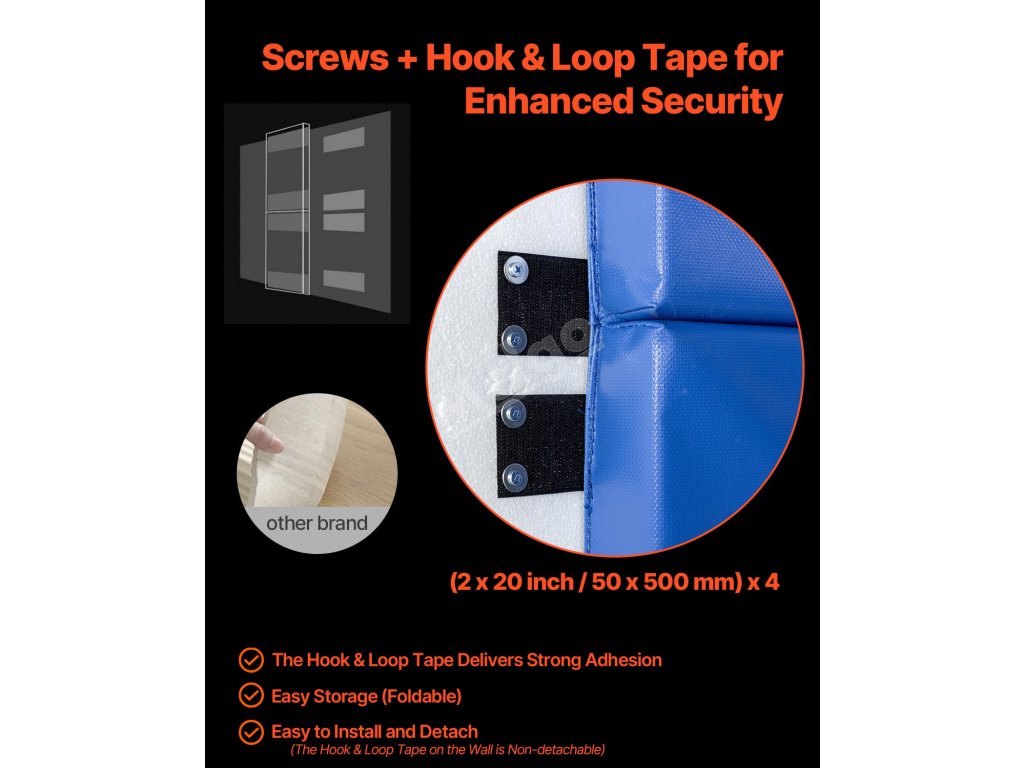 Toto polstrování stěn tělocvičny je vyrobeno z prvotřídního PVC materiálu a je odolné proti opotřebení a roztržení, takže časem nevybledne ani se nezkroutí. Plochá konstrukce velkých rozměrů umožňuje kombinovat více polštářků a vyplnit tak celé stěny, což snižuje nárazy pro sportovce. Snadná instalace, která zajišťuje bezpečnost během hry.