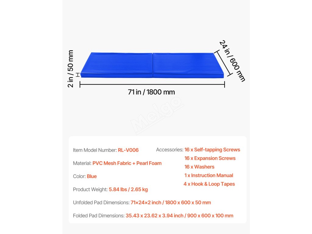 | Rozměry rozložené podložky | 71 x 24 x 2 palce / 1800 x 600 x 50 mm |