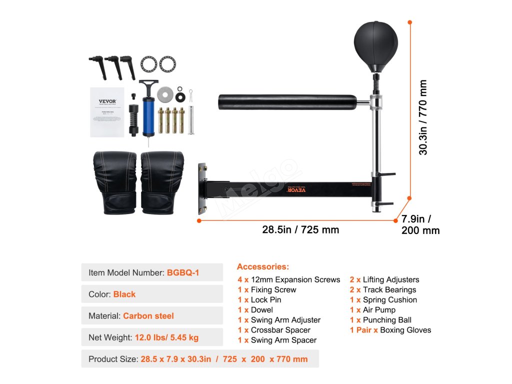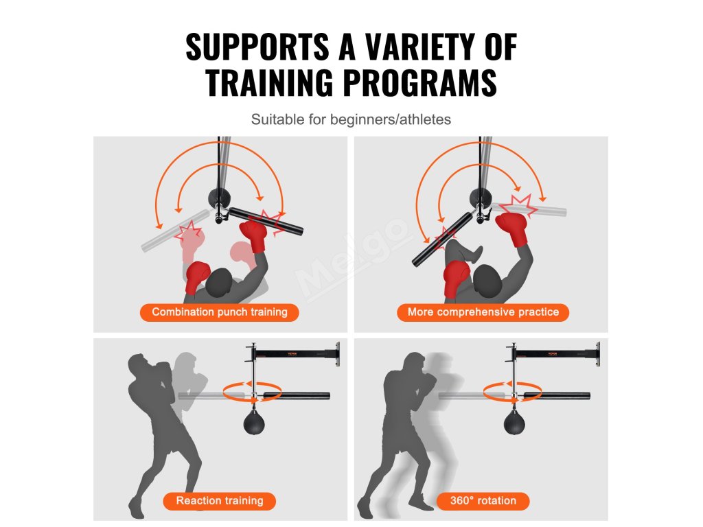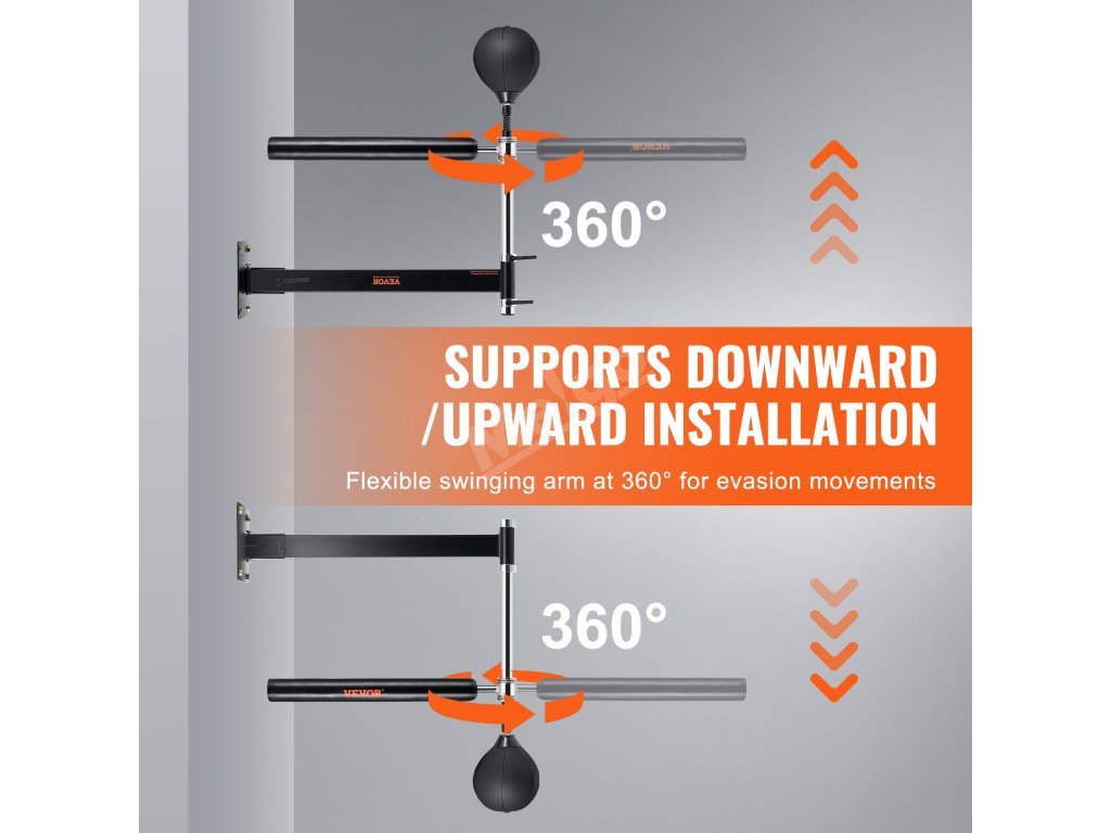 360° otočná tyč zlepšuje koordinaci ruky a oka a zvyšuje rychlost úderů. Boxovací rychlostní tyč podporuje instalaci směrem nahoru i dolů.