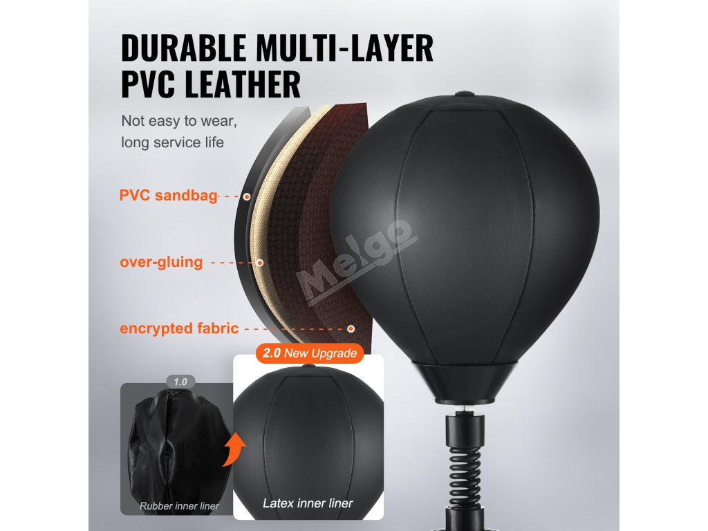 Tato boxerská reflexní tyč je vyrobena z PVC koženého pytle na písek + overwrap + skramblovaná tkanina, zatímco vnitřní měchýř byl vylepšen z gumy na latex, což uživatelům umožňuje trénovat delší dobu bez obav z poškození.