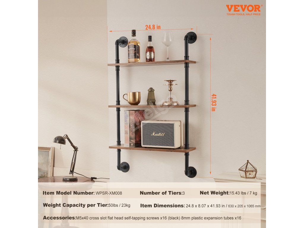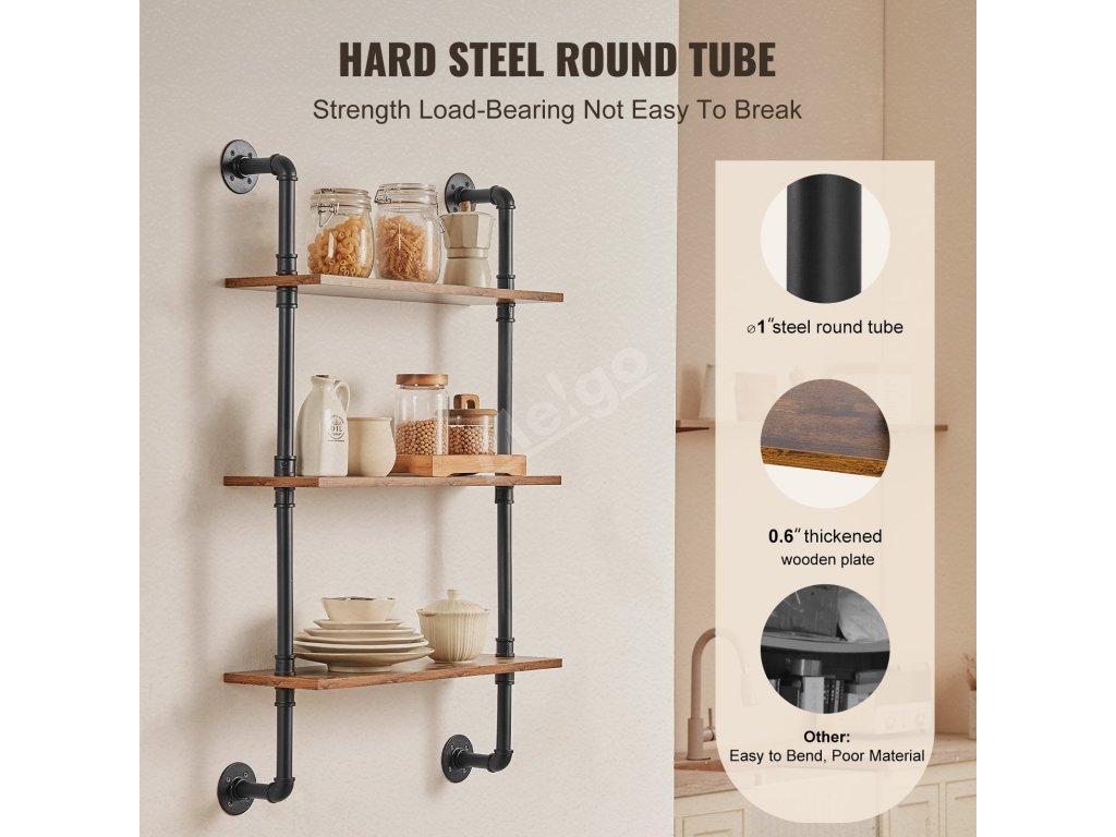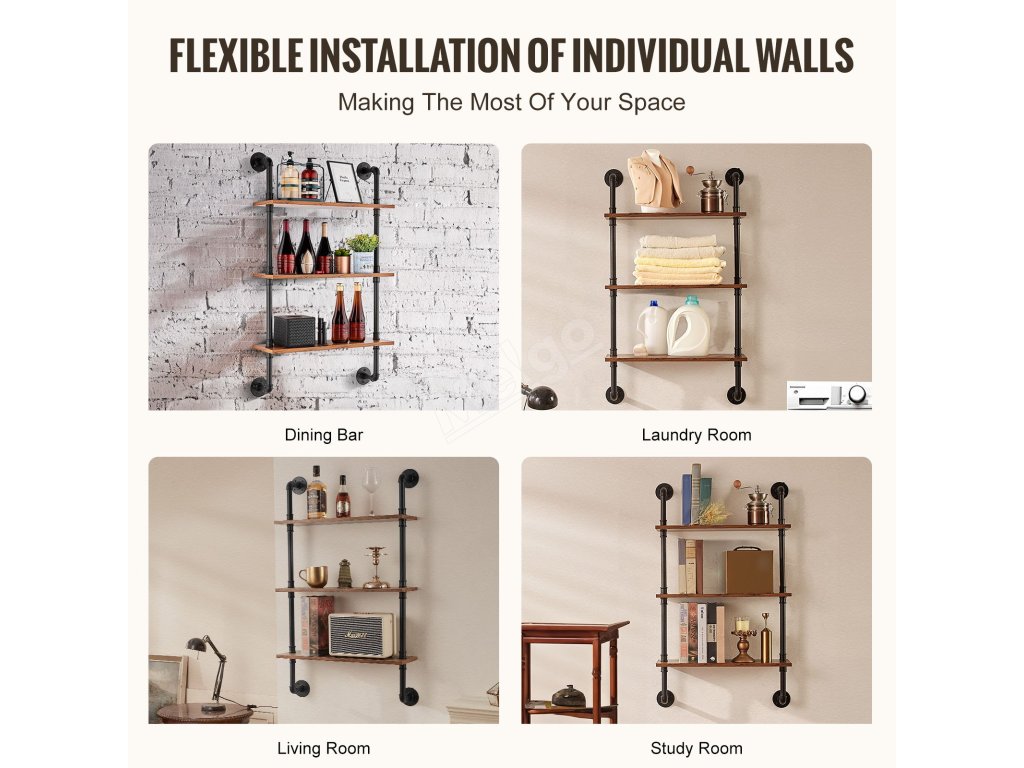 Tento kovový trubkový regál má flexibilní nástěnnou konstrukci, která umožňuje snadnou instalaci na různé stěny v kuchyních, obývacích pokojích a pracovnách, čímž maximalizuje prostor a řeší problémy s úložným prostorem.