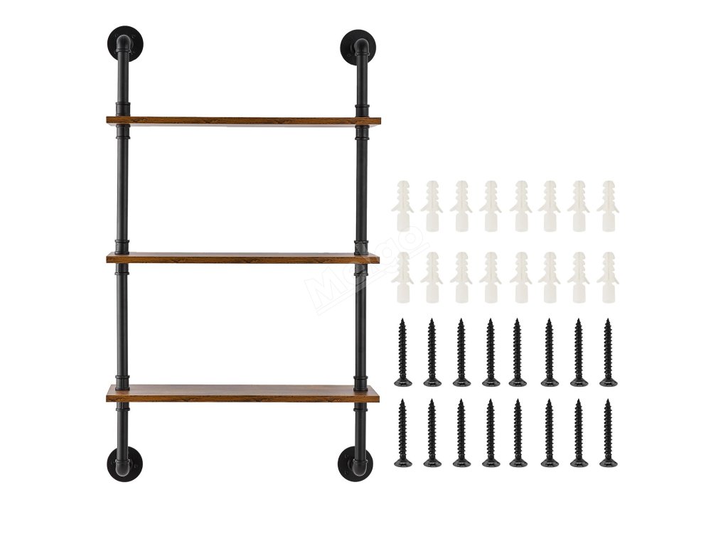 Nástěnná police 3-policová 24×7.87in rustikální dřevo černá