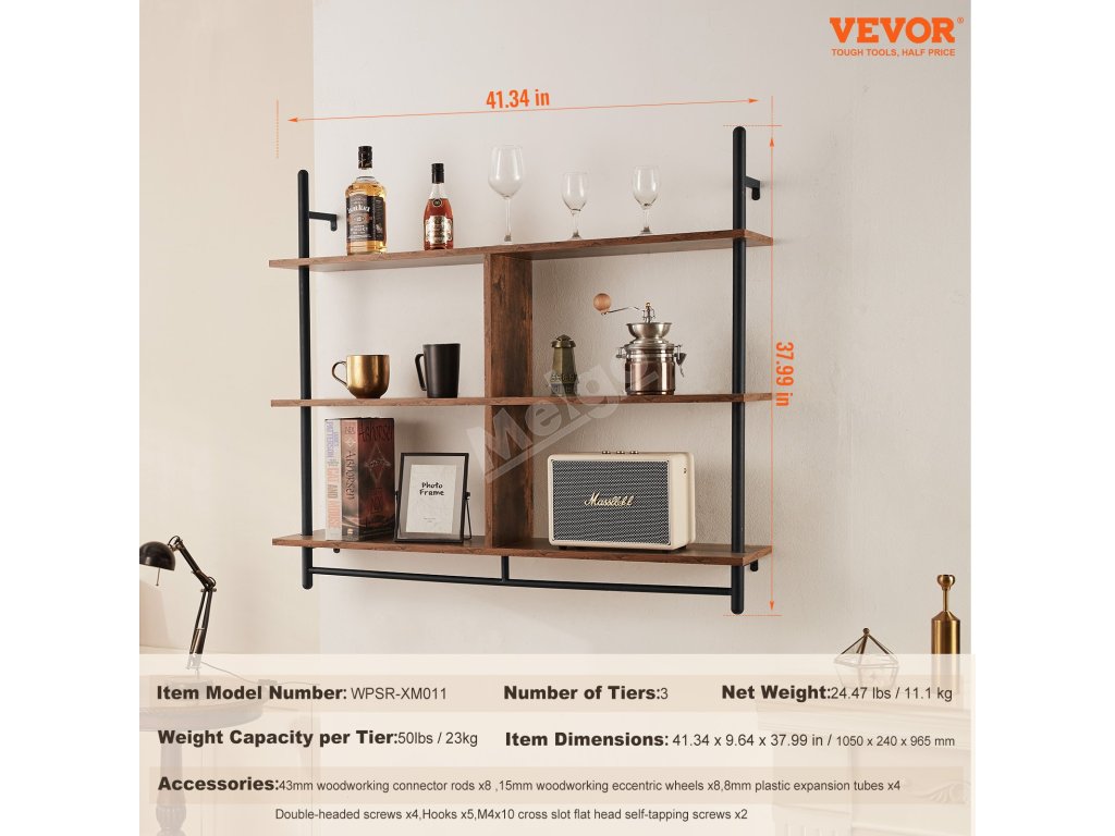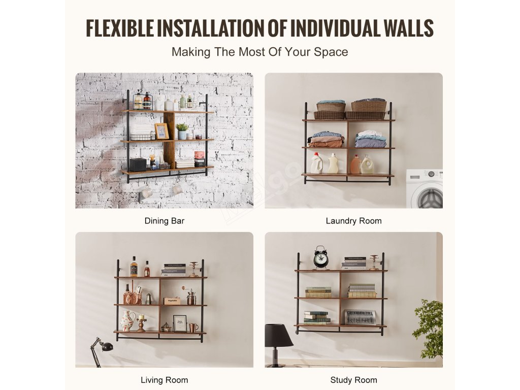 Tento kovový trubkový regál má flexibilní nástěnnou konstrukci, která umožňuje snadnou instalaci na různé stěny v kuchyních, obývacích pokojích a pracovnách, čímž maximalizuje prostor a řeší problémy s úložným prostorem.