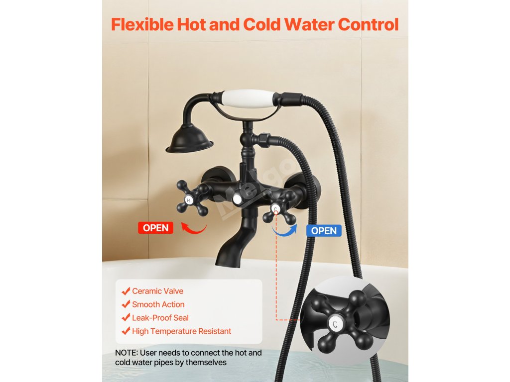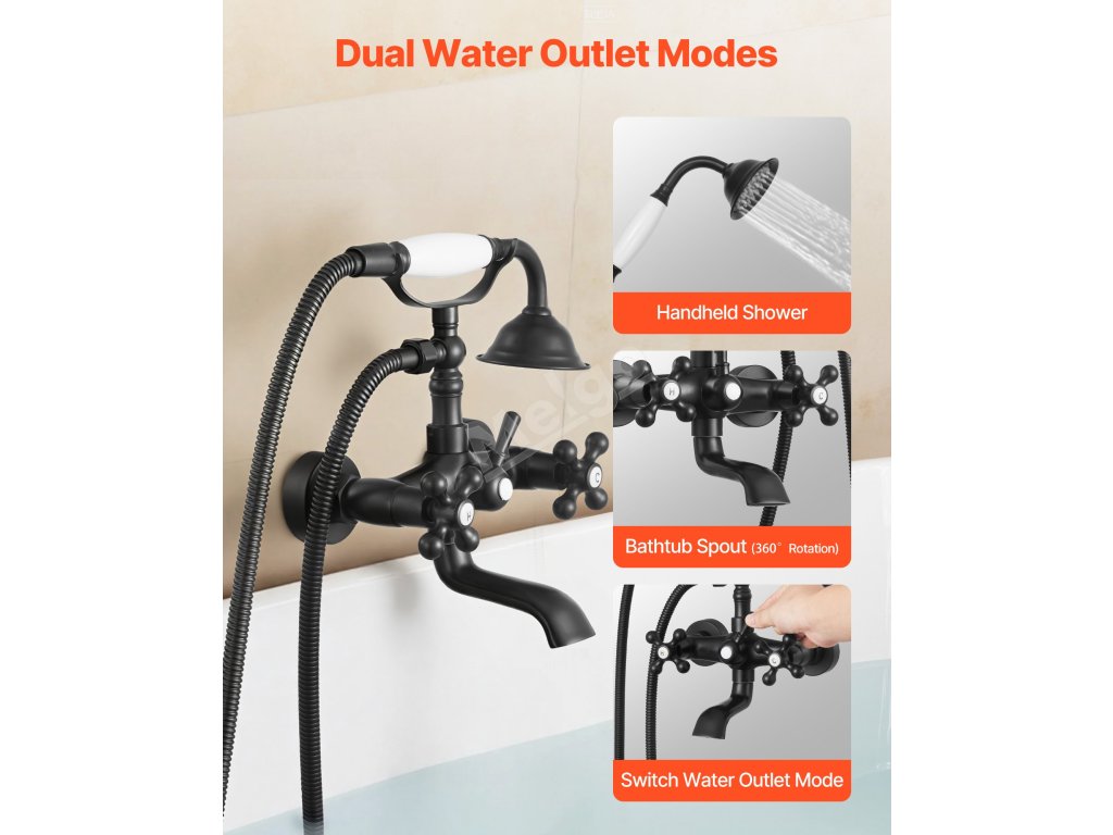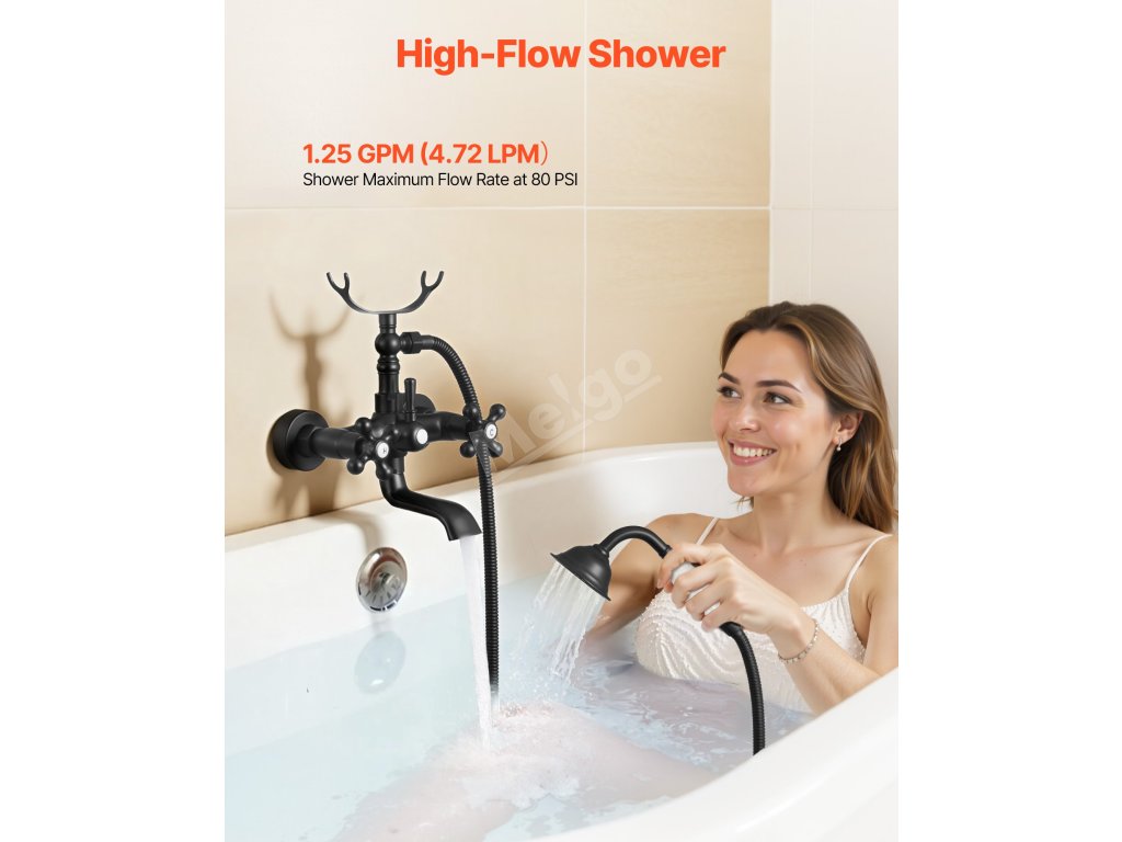 Tato vanová ruční sprchová baterie poskytuje vysoký průtok vody, který rychleji naplní vaši vanu, a zároveň nabízí plnější a pohodlnější sprchování. Můžete libovolně přepínat mezi ruční sprchou a otočnou vanovou výpustí.