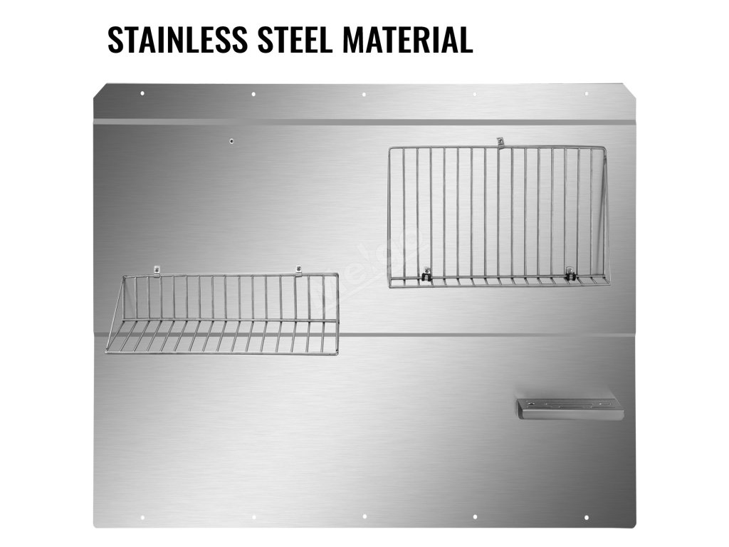 Tato zadní deska je vyrobena z odolné nerezové oceli 18 GA, která poskytuje robustní a silnou desku pro potřeby vaší kuchyně. Má také kartáčovanou povrchovou úpravu NO.4.