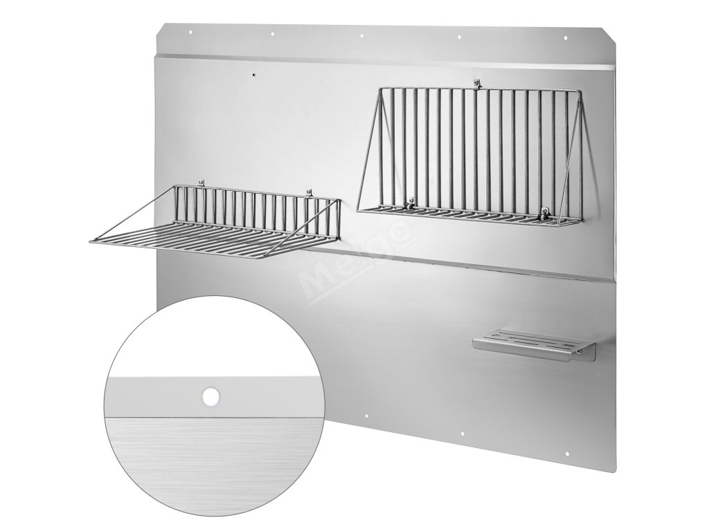Naše prémiová zadní deska na sporák pomáhá chránit stěnu a pojme nože, koření, přílohy a další příslušenství pro přípravu pokrmů, které se hodí do jakéhokoli prostoru pro vaření.