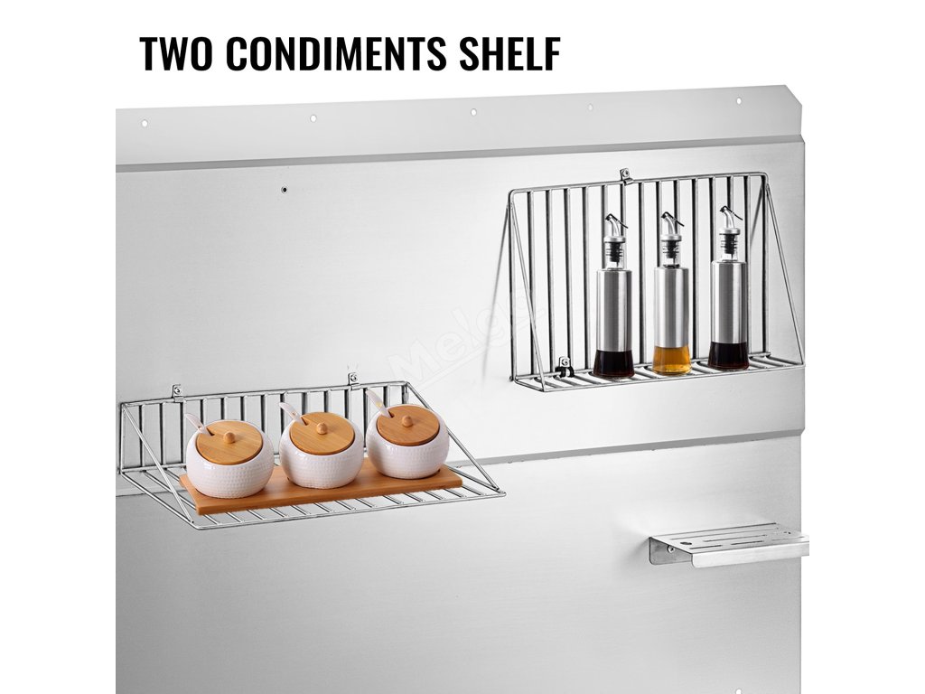 Dvě odkládací police vám poskytnou snadno přístupný úložný prostor pro koření a přílohy, takže budete mít koření vždy po ruce.