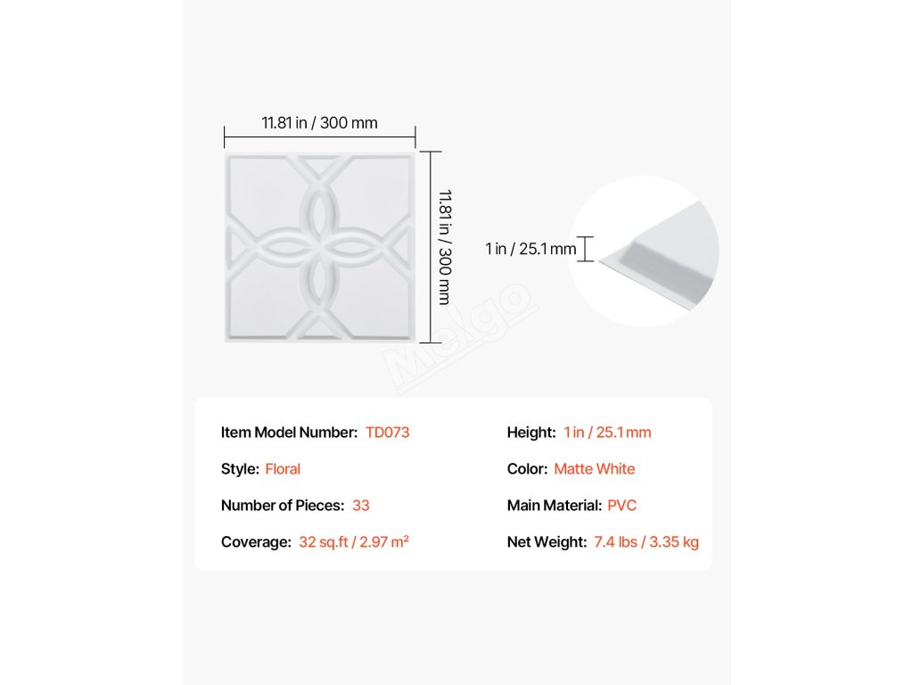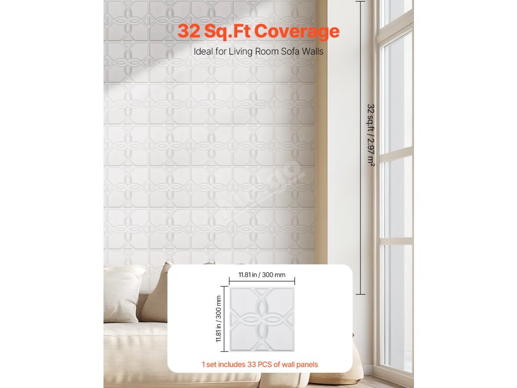 Nástěnné 3d panely 33 ks 11.81×11.81 in pvc krytí 32 sq.ft bílá