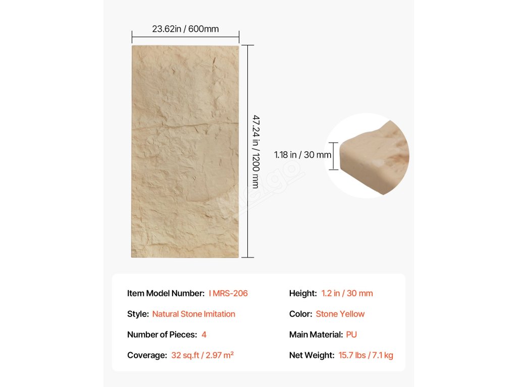| Rozmery výrobku (D x Š x V) | 48 x 24 x 1,2 palca / 1200 x 600 x 30 mm |