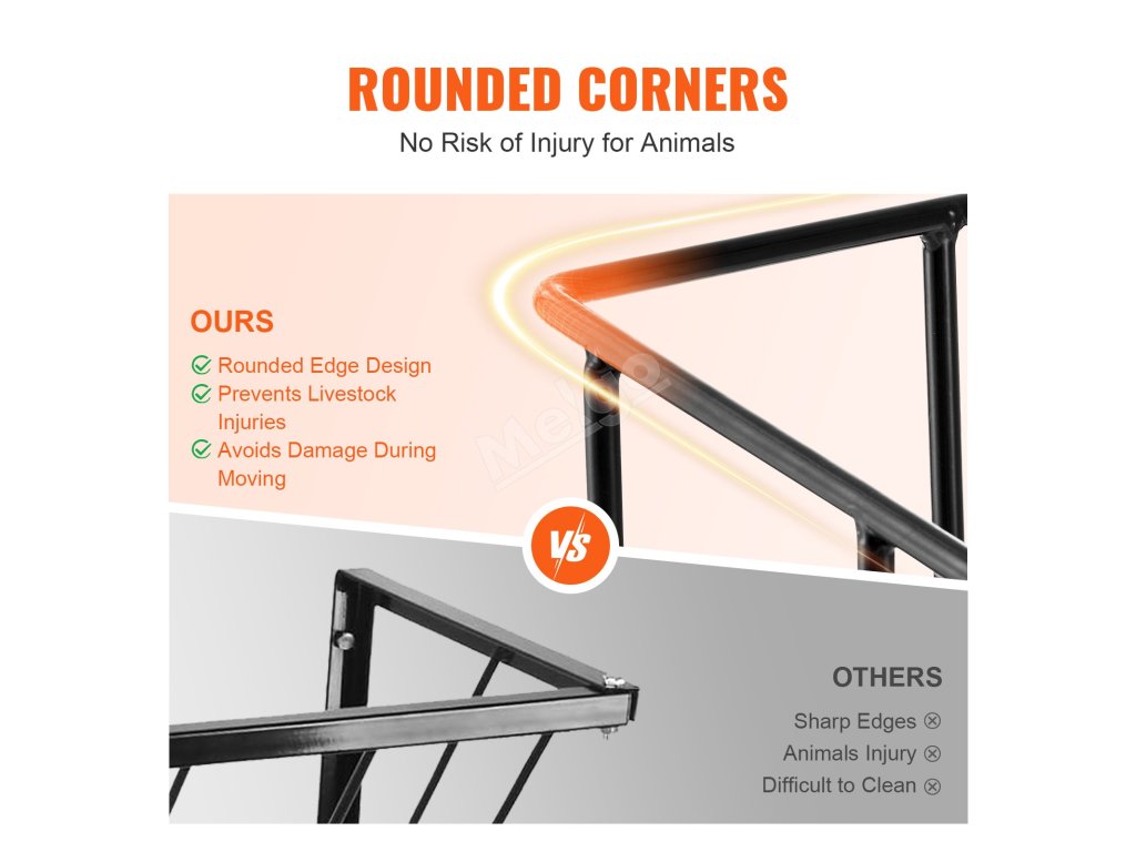 U krmítka pro hospodářská zvířata byla použita konstrukce se zaoblenými hranami, aby se zabránilo riziku poškrábání, které mohou způsobit ostré hrany. Ať už se jedná o velkého koně nebo mírnou ovci, toto krmítko poskytne vašim zvířatům bezpečné prostředí pro příjem potravy.