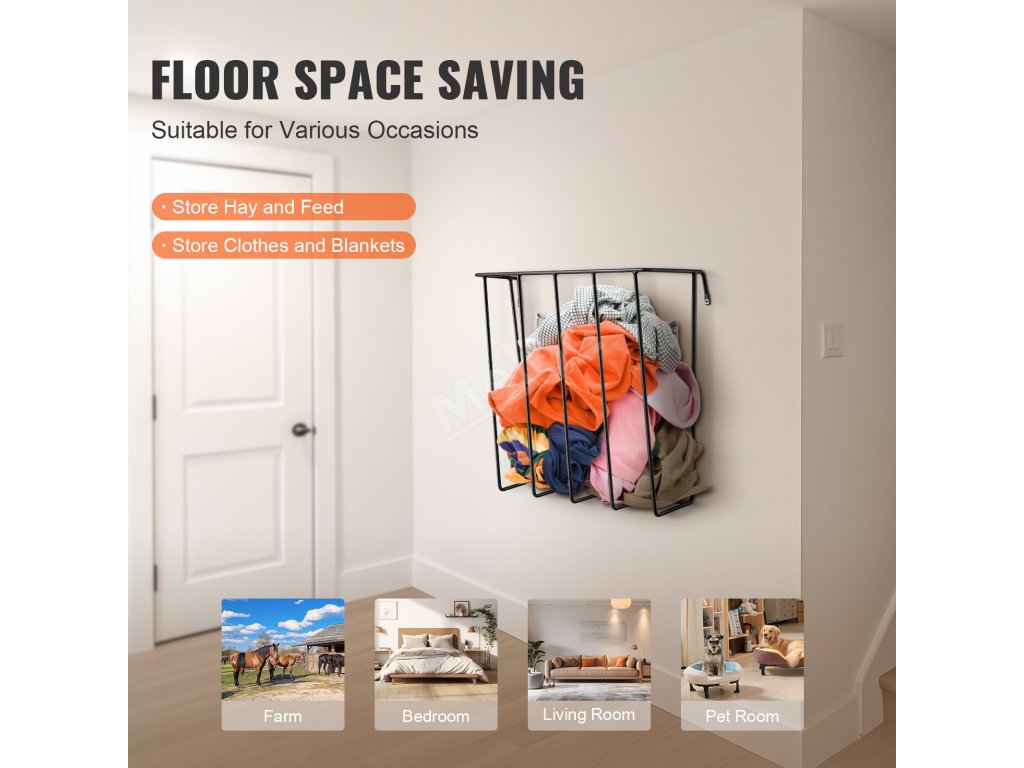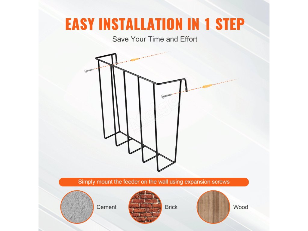 Tento stojan na seno je ideální pro instalaci na různé stěny na koňských farmách, ovčích farmách, rančích nebo domácích dvorech. Ať už se jedná o dřevěnou zeď, cihlovou zeď nebo zeď z jiných materiálů, lze jej snadno upevnit.