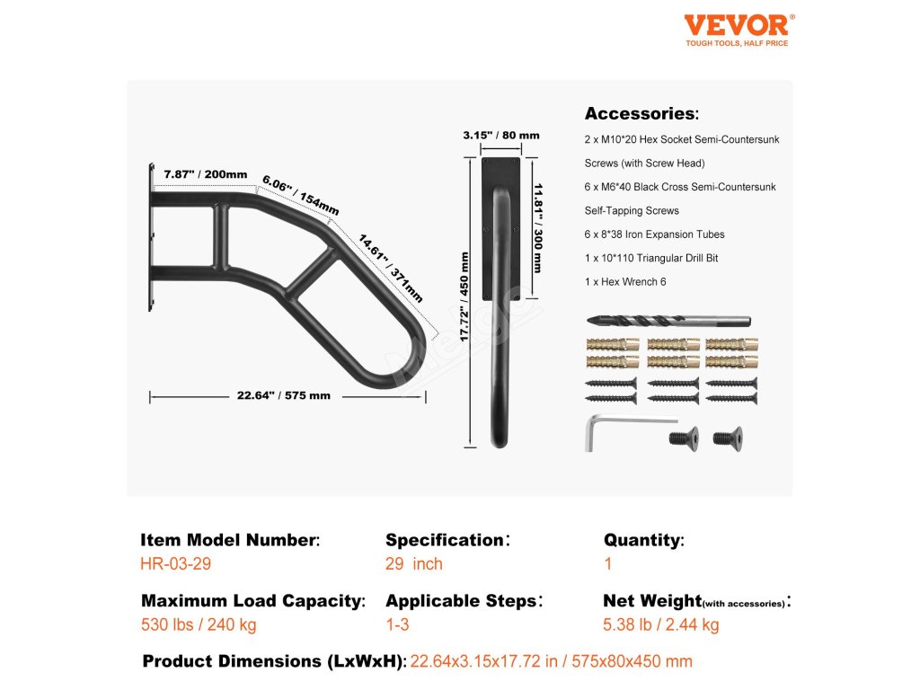 Naše venkovní nástěnná zábradlí vyrobená z prvotřídní uhlíkové oceli zaručují výjimečnou robustnost a silnou nosnost. Je vybaveno kovovými dilatačními trubkami a plně podpírá dospělé osoby, aniž by se kymácelo nebo deformovalo. Poskytuje bezpečnou oporu při chůzi do schodů a ze schodů.