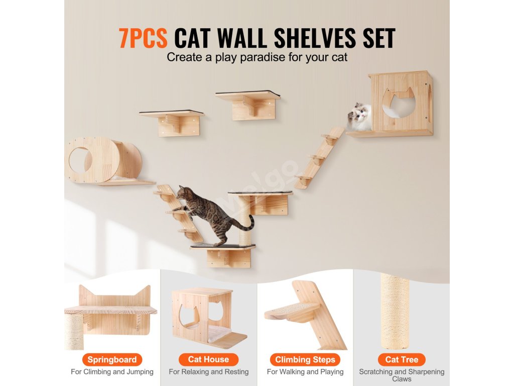 Nástěnné police pro kočky VEVOR - zábavný prostor pro vaši kočku!