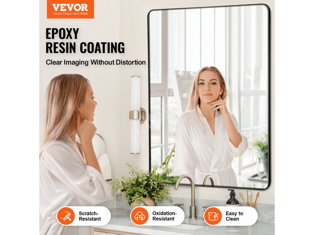 Lehký rám zrcadla vyrobený z vysoce kvalitní hliníkové slitiny je odolný proti korozi a zachovává si lesk i ve vlhkých prostorách, jako jsou koupelny, a nabízí dlouhou životnost a elegantní a moderní vzhled.