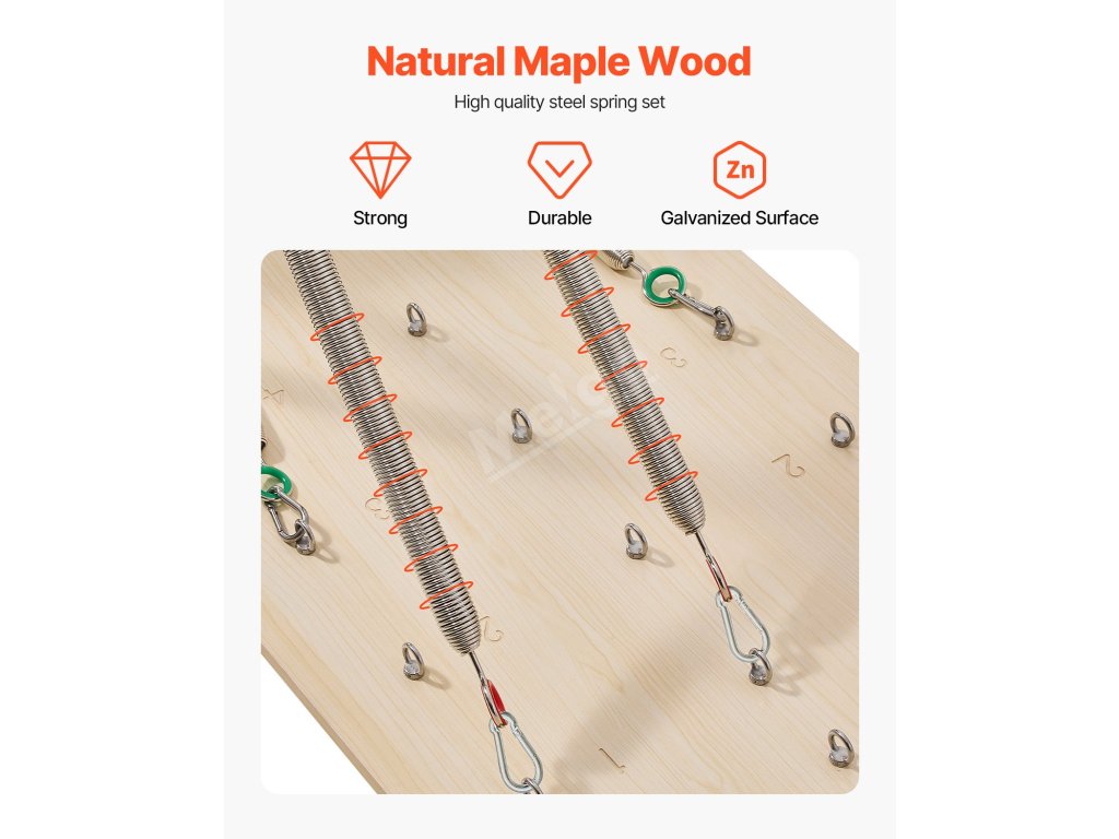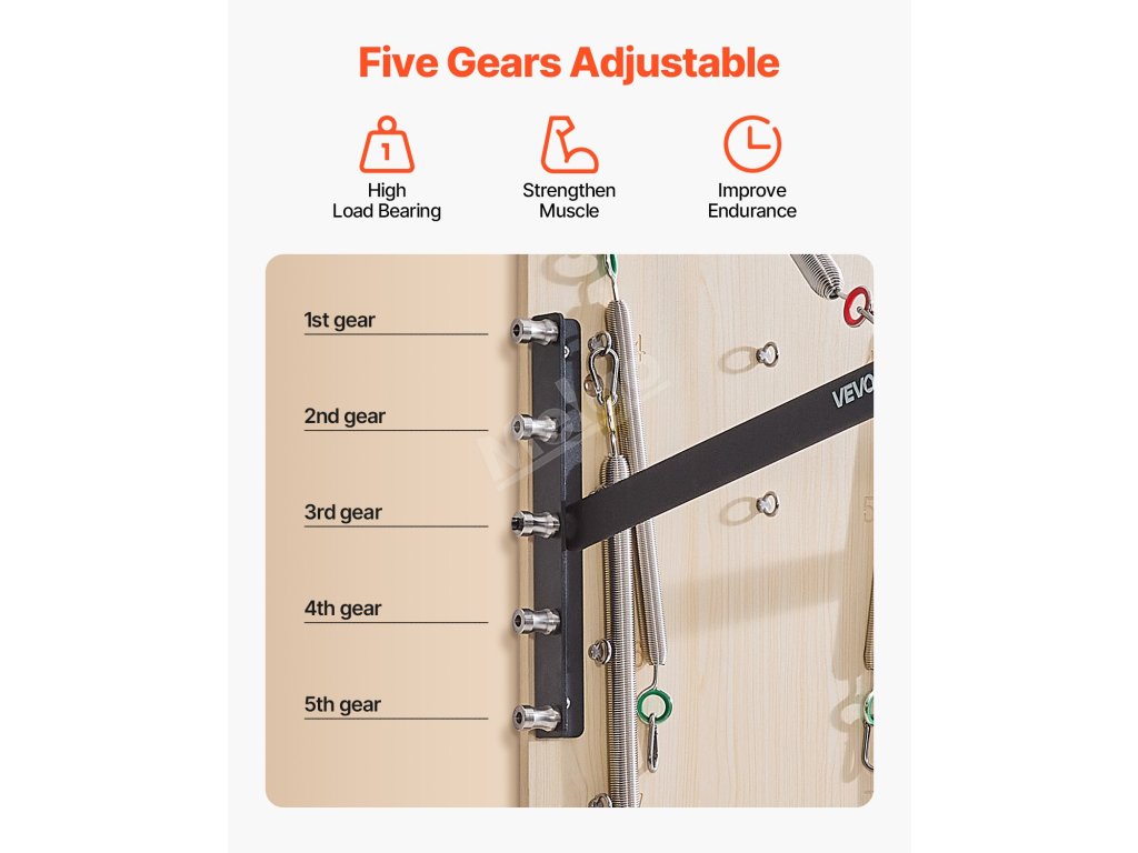 Trenažér na jógu využívá vysoce kvalitní pružiny s 8 nastavitelnými úrovněmi odporu včetně kombinace těžkých, středních a lehkých pružin. Je také vybaven 5 nastavitelnými háky na nohy a 10 nastavitelnými kolíky na desce, což vám umožní přizpůsobit si cvičení.