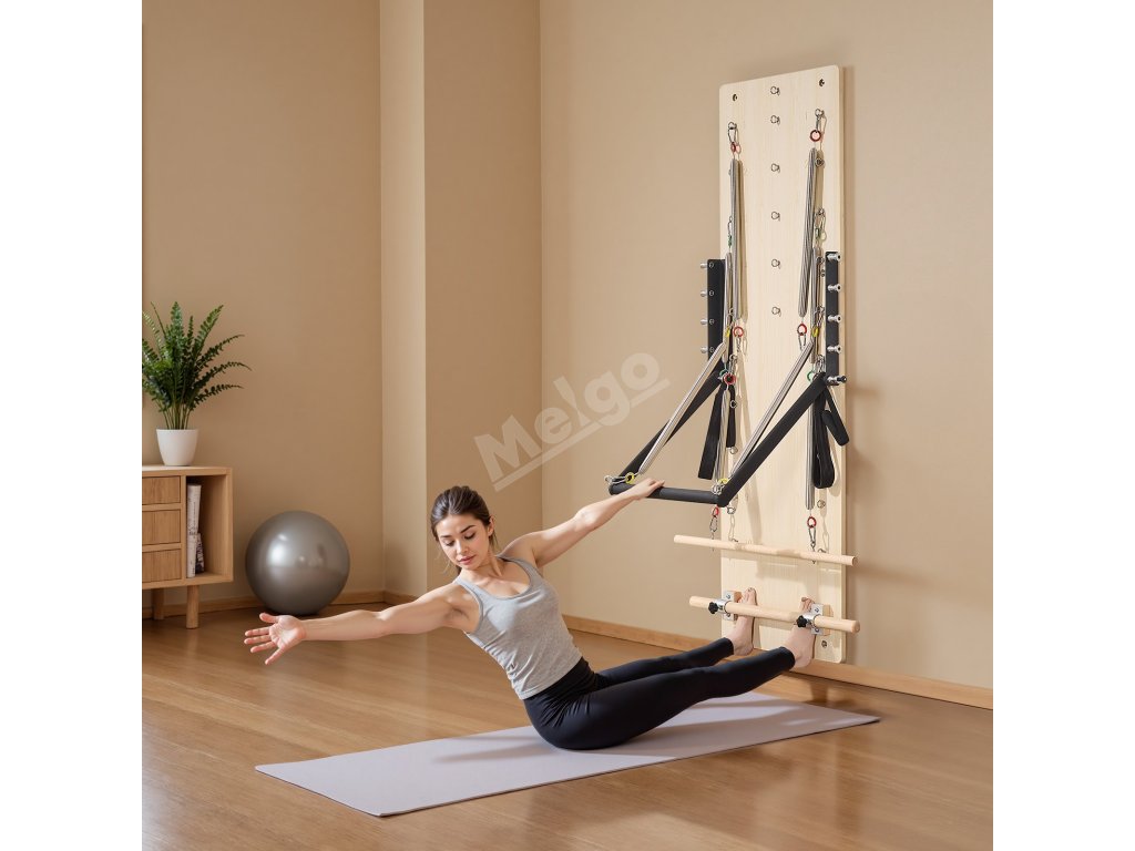 Nástěnné cvičební zařízení Pilates je vhodné do domácích tělocvičen nebo profesionálních studií jógy a pomáhá zlepšovat svalovou sílu, formovat jádro těla, napravovat držení těla a tvarovat postavu.