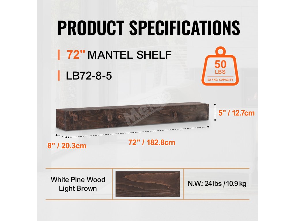 Nástěnný plovoucí krbový nástavec 72"×8"×5", nosnost 50 lbs