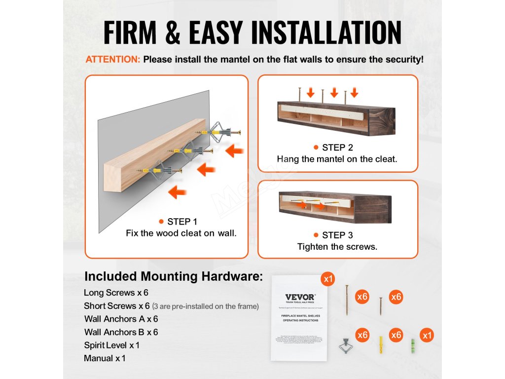 Pro bezpečnou a snadnou instalaci se ujistěte, že je dřevěný plášť připevněn k rovným stěnám. Součástí balení je veškerý potřebný montážní hardware, který usnadňuje proces nastavení a zajišťuje pevnou instalaci.