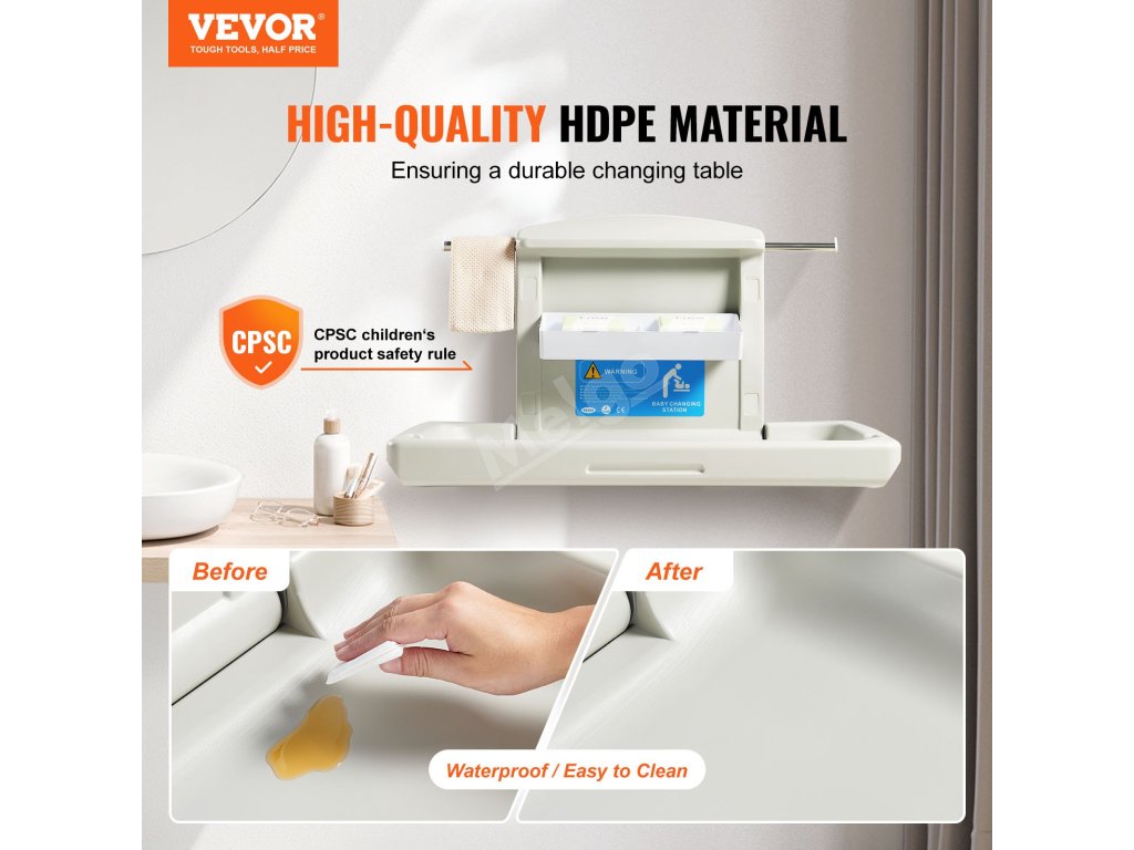 Tato přebalovací stanice je vyrobena z prvotřídního materiálu HDPE a vydrží zkoušku časem v domácím i komerčním prostředí. Zaručuje stabilní a pohodlné přebalování vašeho dítěte.