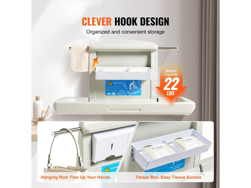 Na háčky můžete pohodlně zavěsit ručníky, tašky na pleny nebo batohy, čímž si uvolníte ruce a výměna plenek bude hračka.