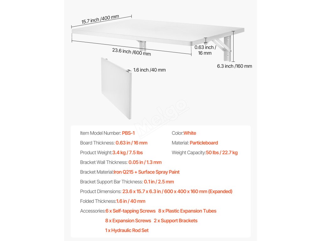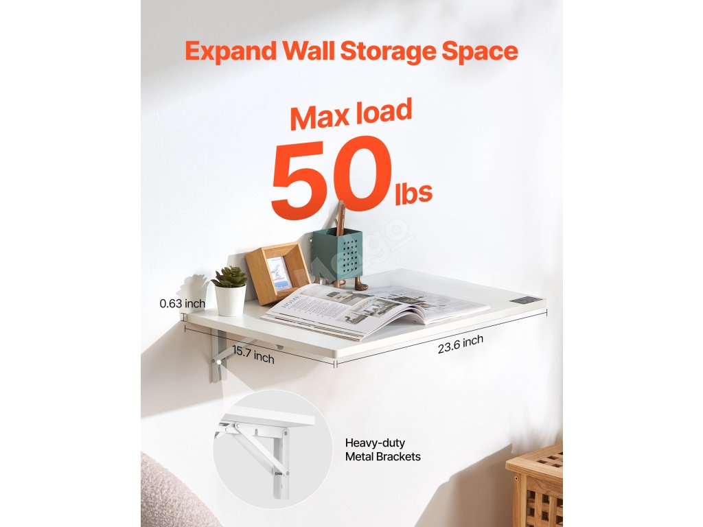 Tento nástěnný psací stůl s prostornou plochou vyhovuje různým životním a pracovním potřebám. Ať už jako psací stůl nebo pracovní stanice, pohodlně se na něj vejdou dekorace, knihy, sešity i nářadí a vše bude přehledně uspořádané.