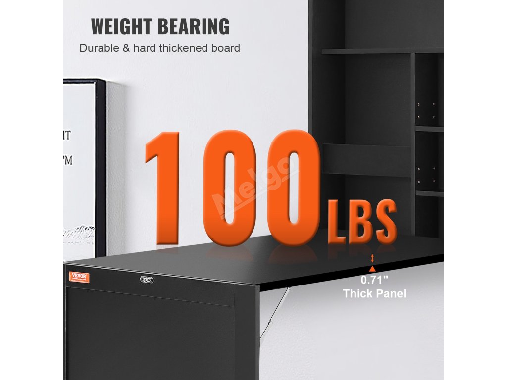 Vysoce kvalitní dřevotřísková deska našeho nástěnného skládacího stolu se vyznačuje trvanlivostí a odolností proti opotřebení. Deska o tloušťce 0,71 palce unese až 100 kg. Povrchová úprava zajišťuje hladký vzhled a zlepšuje snadné čištění.