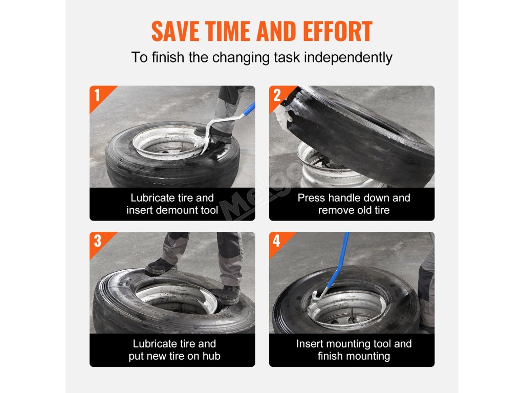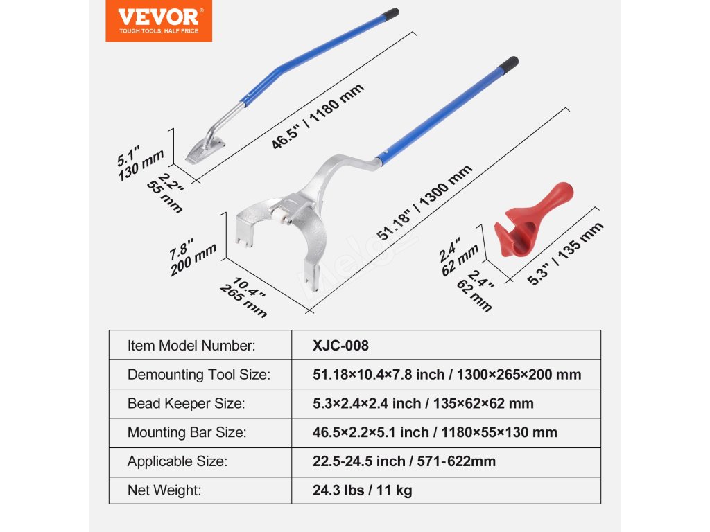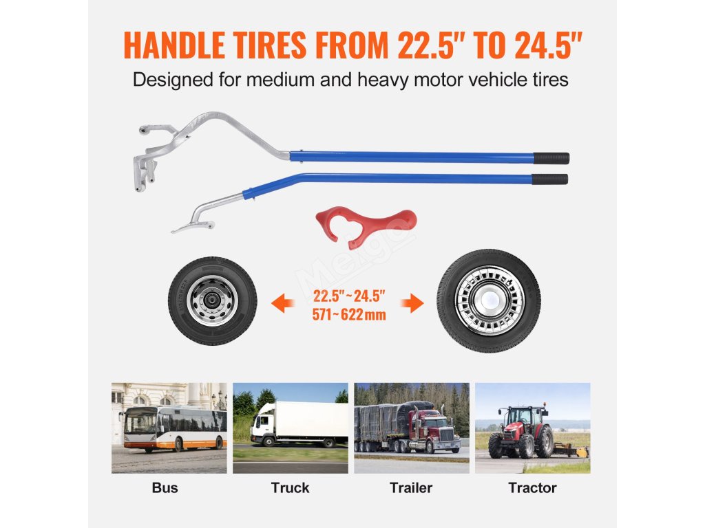Náš nástroj na výměnu pneumatik je určen k montáži a demontáži pneumatik o rozměrech 22,5"-24,5"/571-622 mm. Je ideálním nástrojem pro různá vozidla včetně autobusů, nákladních automobilů, přívěsů, traktorů a dalších.