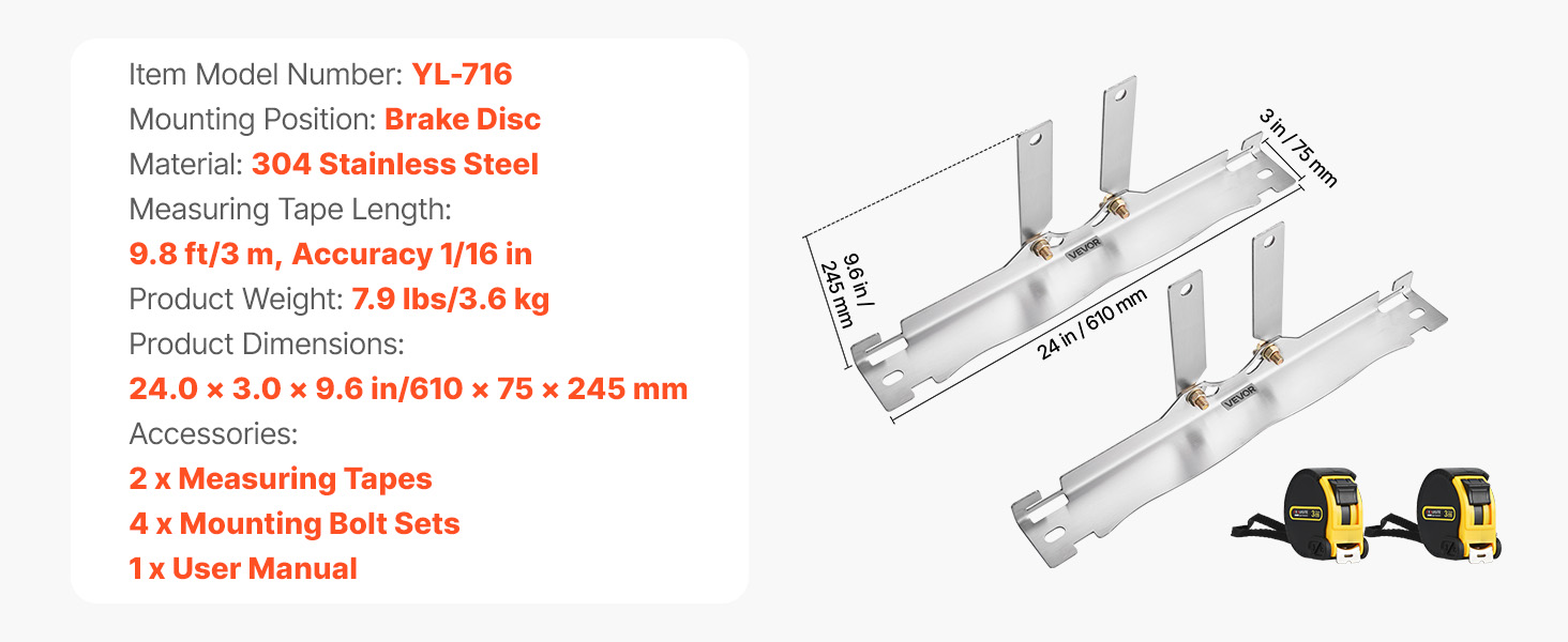 Tyto vyrovnávací desky na prsty jsou vyrobeny z odolné nerezové oceli, odolávají korozi a vydrží náročné podmínky v garáži. Přesně opracované drážky pevně přiléhají ke šroubům náboje a poskytují spolehlivou základnu pro přesné měření.