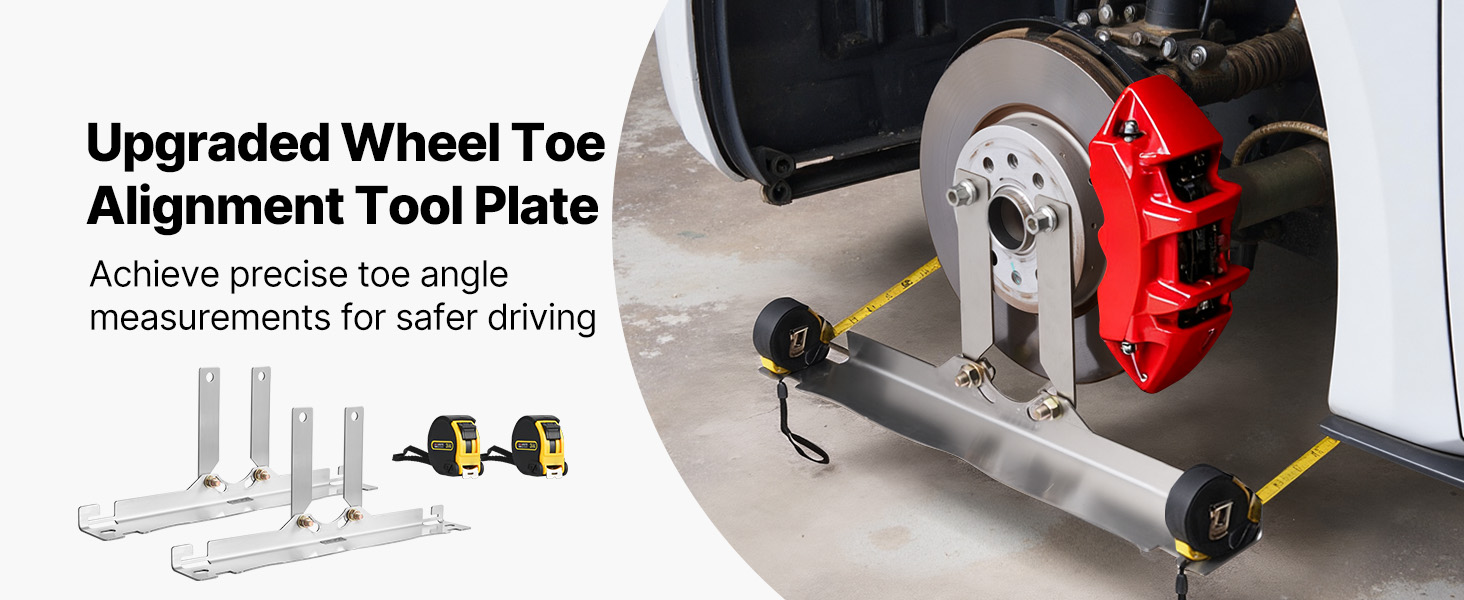 Nástroj pro nastavení natočení kol, 2 nerezové desky, 2 měřidla
