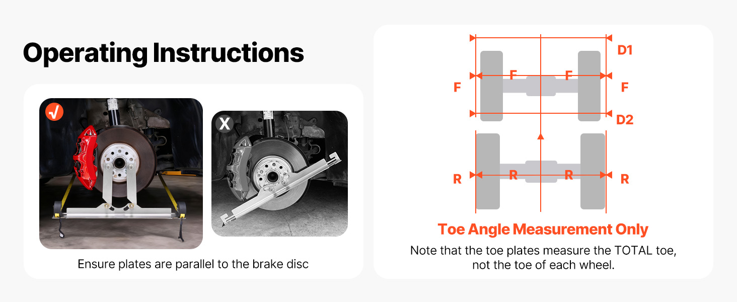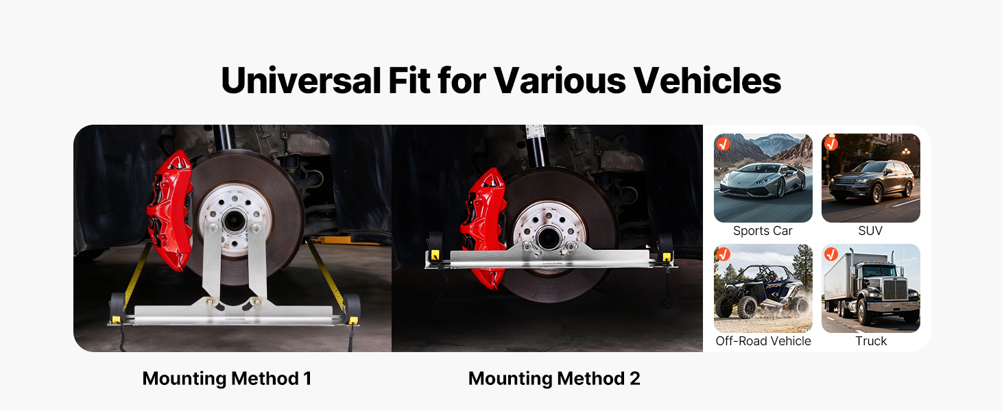 K deskám pro vyrovnávání špičky se dodávají podrobné pokyny, které vysvětlují nastavení, způsob řešení rušení brzdových kotoučů a výpočet úhlů špičky. Jsou chytřejší, rychlejší a přesnější volbou pro vyrovnání kol.