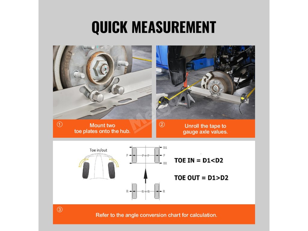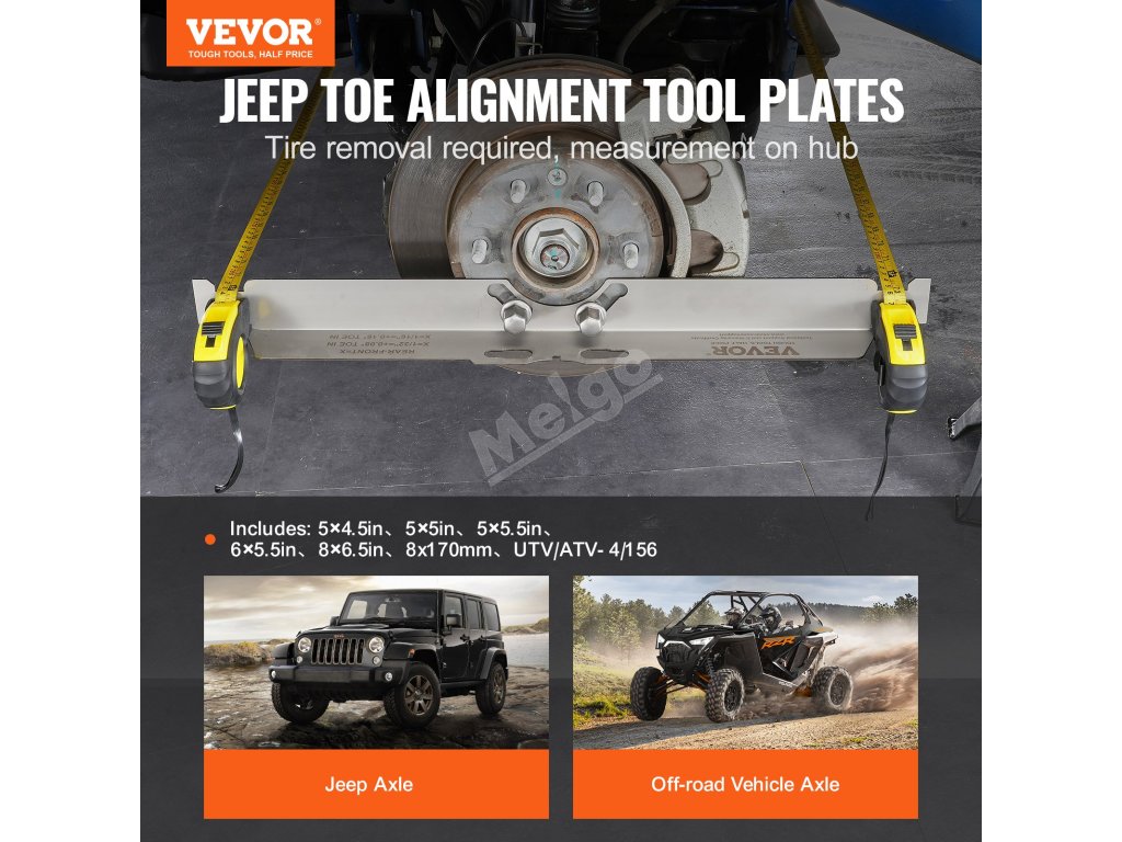 Tento nástroj pro seřízení kol je ideální pro vozy Jeep, terénní vozy a různé další modely. Poskytuje přesnější měření úhlu odklonu díky přímému měření přes náboj. Tato přesnost umožňuje přesnější kalibraci úhlu odklonu kol, což je nezbytné pro hladkou a bezpečnou jízdu.