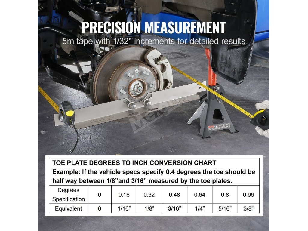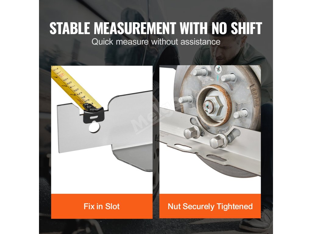 Nástroj pro sbíhavost kol 2 ks nerez desky, 2 pásky, tabulka