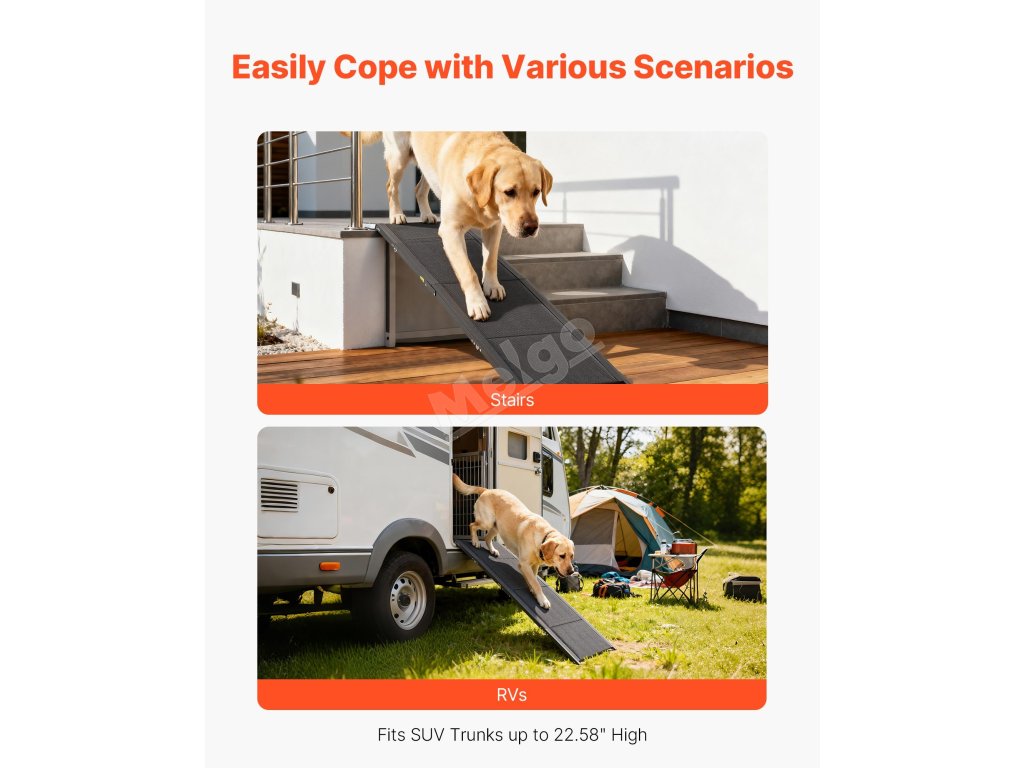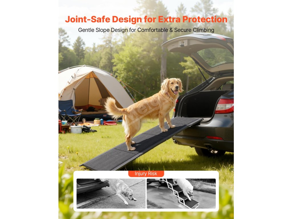 Velká rampa pro psy je ideální pro auta, vnitřní schody, venkovní schody, karavany nebo bazény. Snižuje zátěž kloubů, zajišťuje bezpečný a pohodlný pohyb domácích mazlíčků v jakémkoli prostředí a poskytuje vám klid během vycházek.
