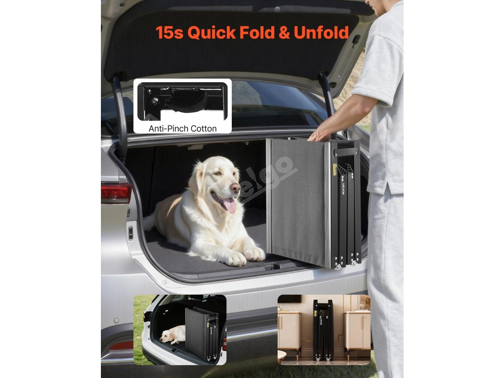 Psí rampa do auta má protiskluzový povrch a skládací konstrukce umožňuje snadné skladování a přenášení. Pomáhá domácím mazlíčkům bezpečně a s jistotou nastupovat a vystupovat z auta nebo stoupat po schodech, je vhodná pro více scénářů
