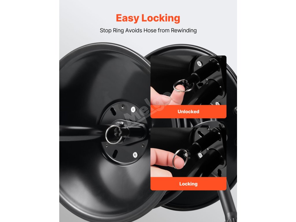 Tento naviják na hadice přehledně ukládá hadice a zabraňuje jejich zamotání. Ideální pro tlakové myčky, čištění automobilů, domácí použití a zalévání zahrady. Je všestranný a snadno se používá, zlepšuje účinnost čištění a zavlažování při různých každodenních úkonech.