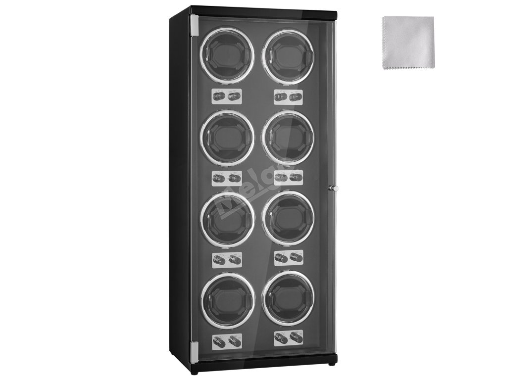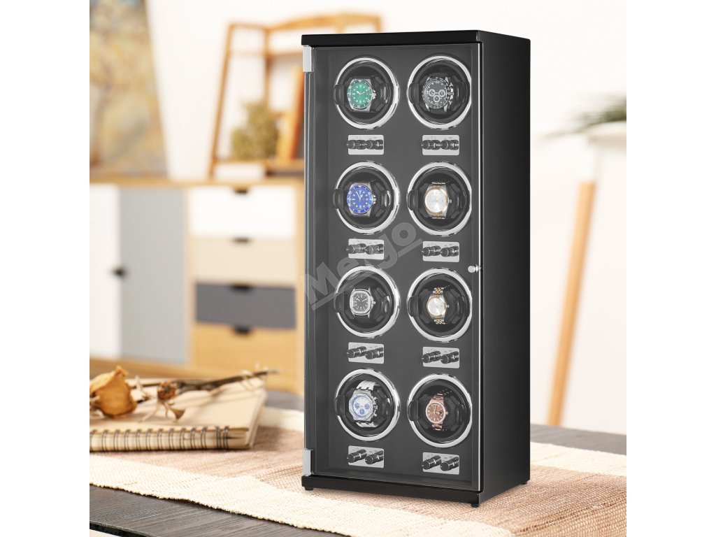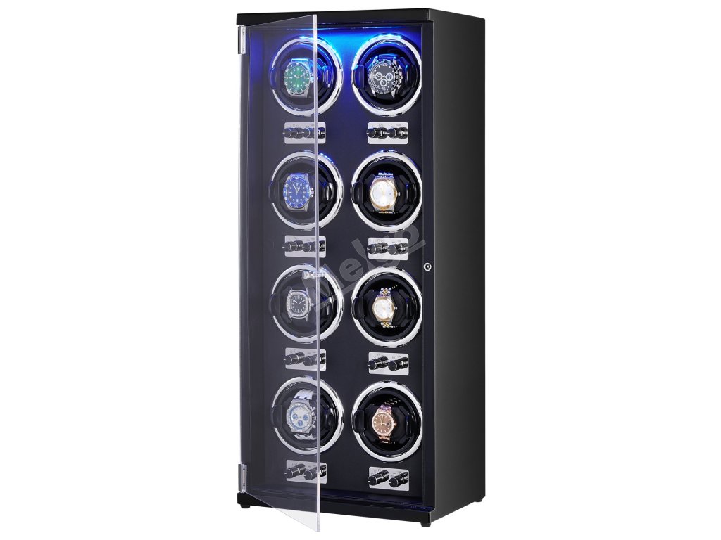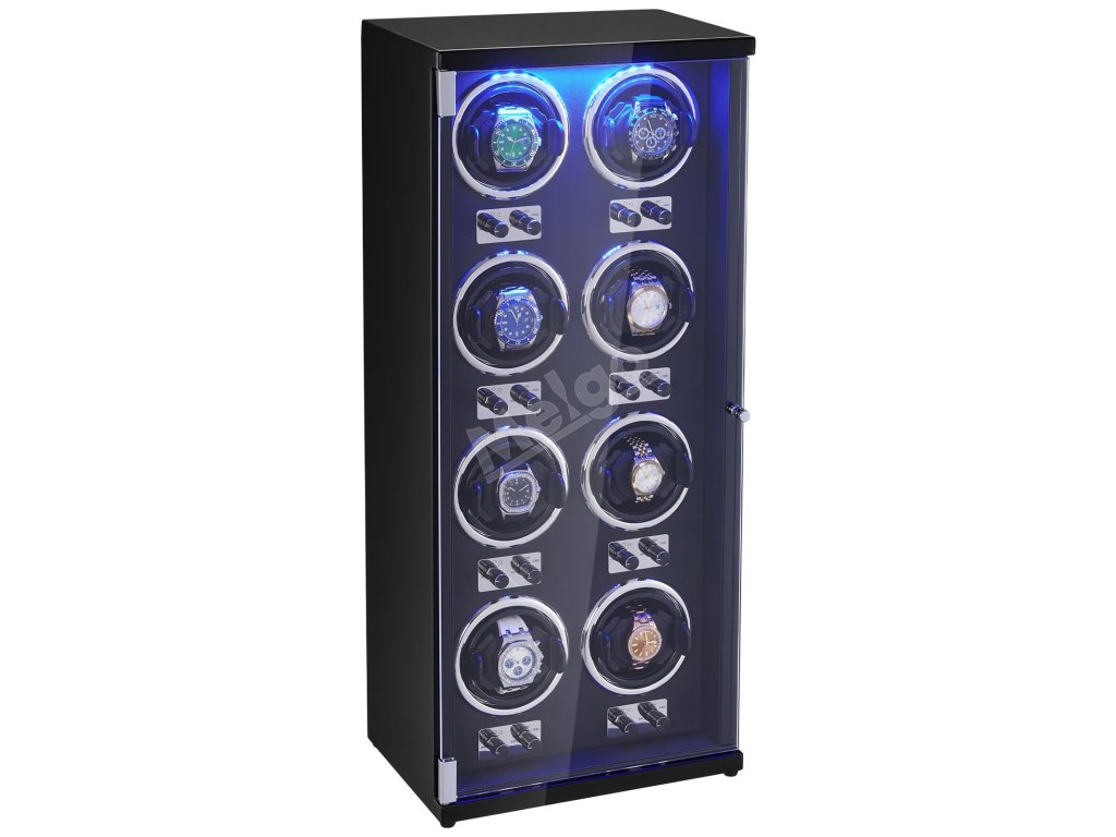 Navíječ 8 automatických hodinek, tiché motory, modré led, černé pu