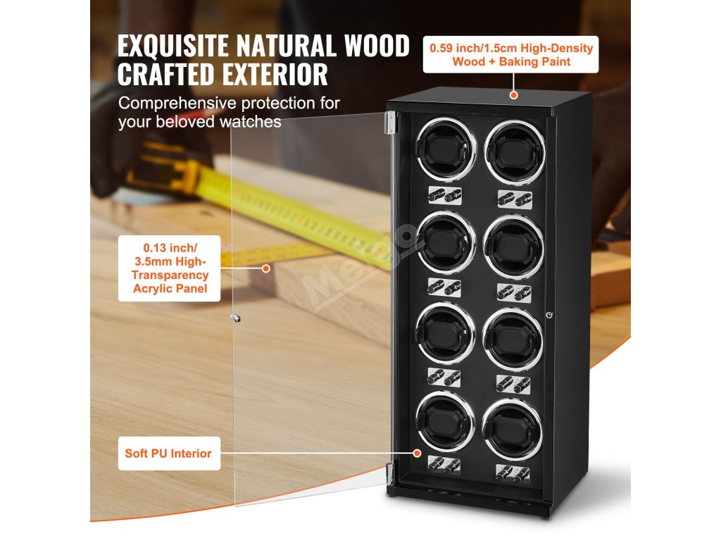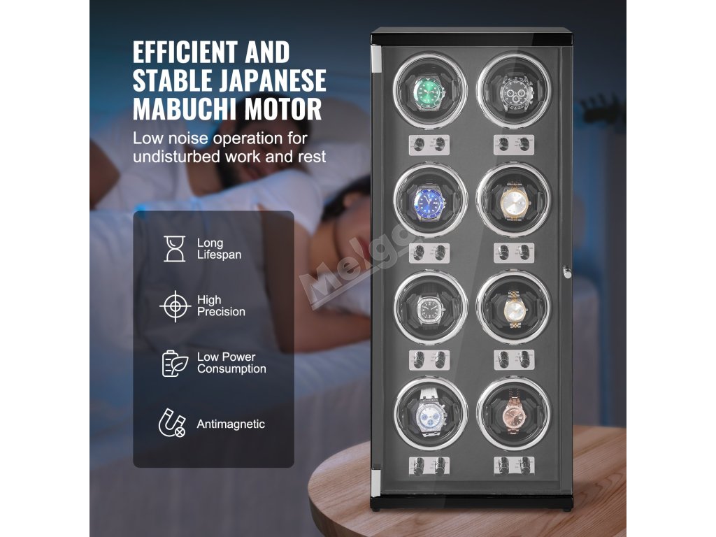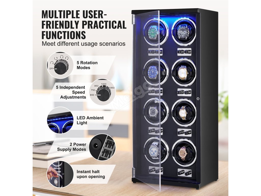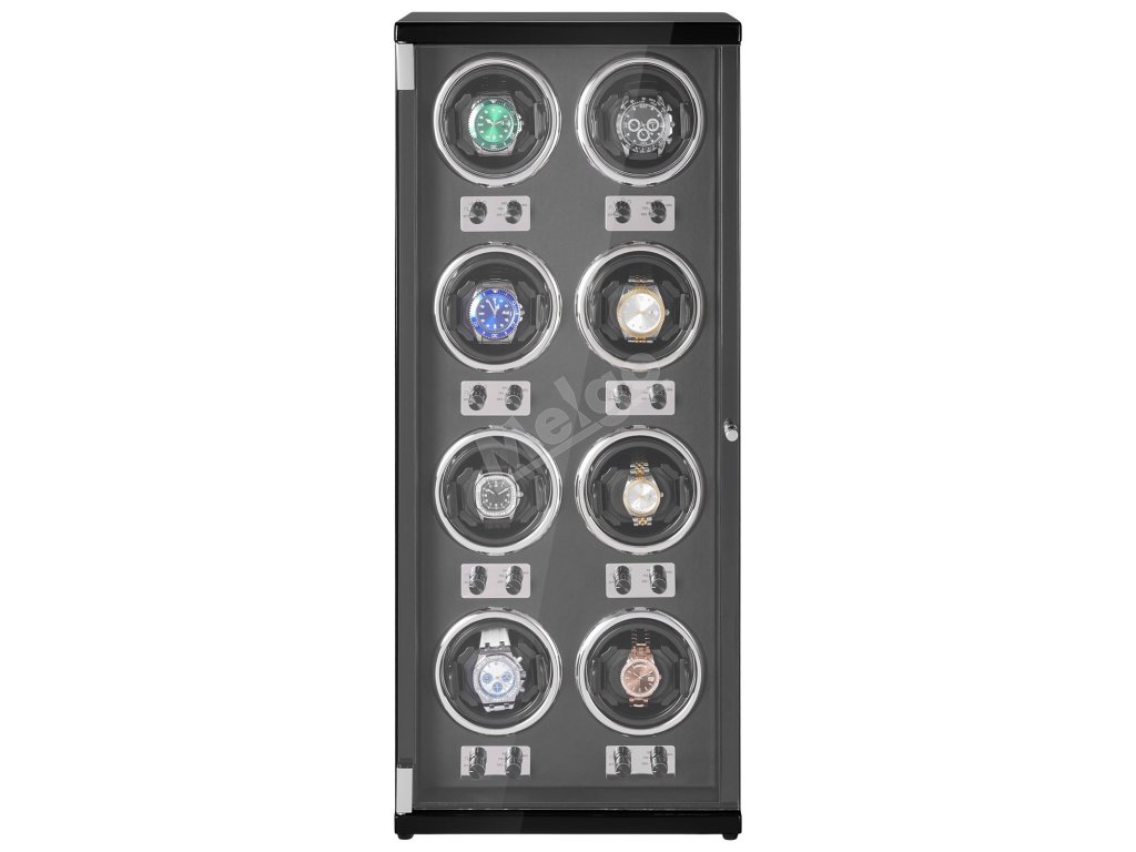 Navíječ 8 automatických hodinek, tiché motory, modré led, černé pu