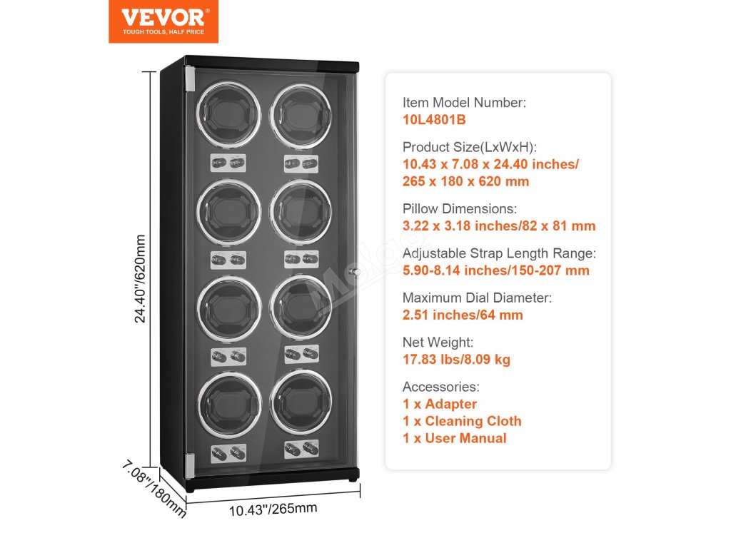 Jedná se o zařízení určené k dodatečnému napájení mechanických hodinek. Díky jedinečnému režimu otáčení je náš natahovač hodinek kompatibilní s většinou pánských a dámských mechanických hodinek. Podporuje hodinky s délkou řemínku od 5,90" do 8,14" (150-207 mm) a maximální velikostí ciferníku 2,51" (64 mm).