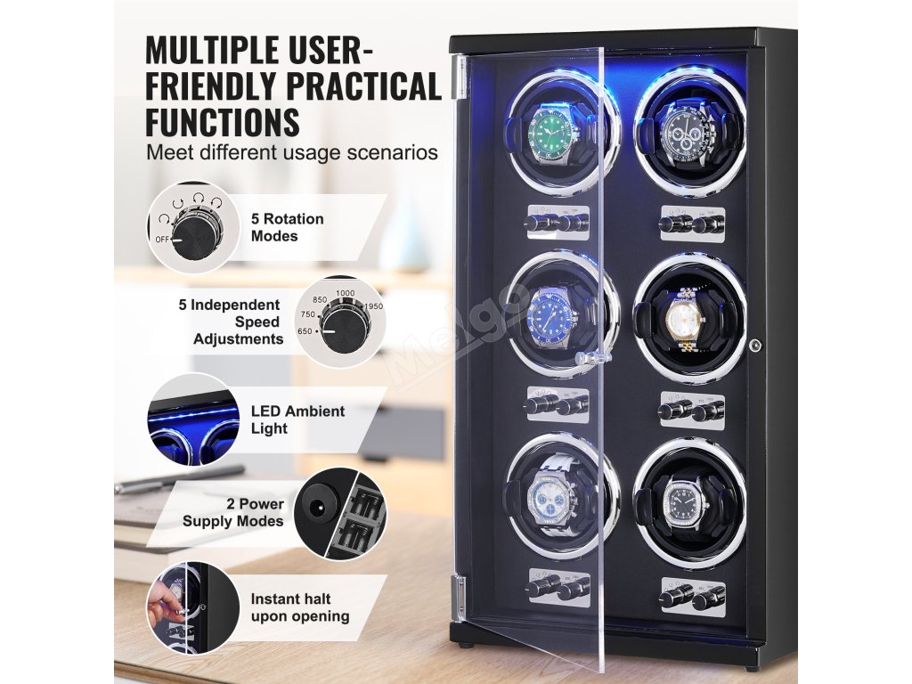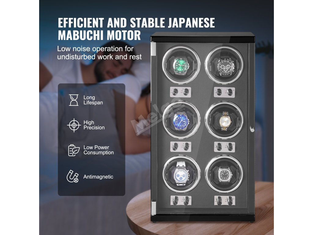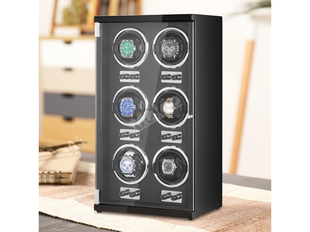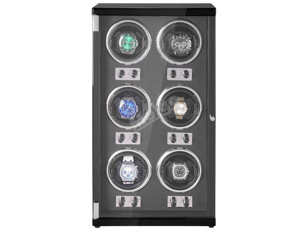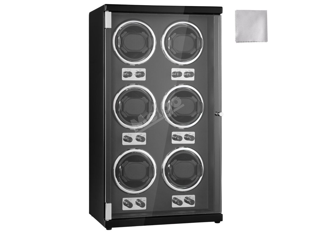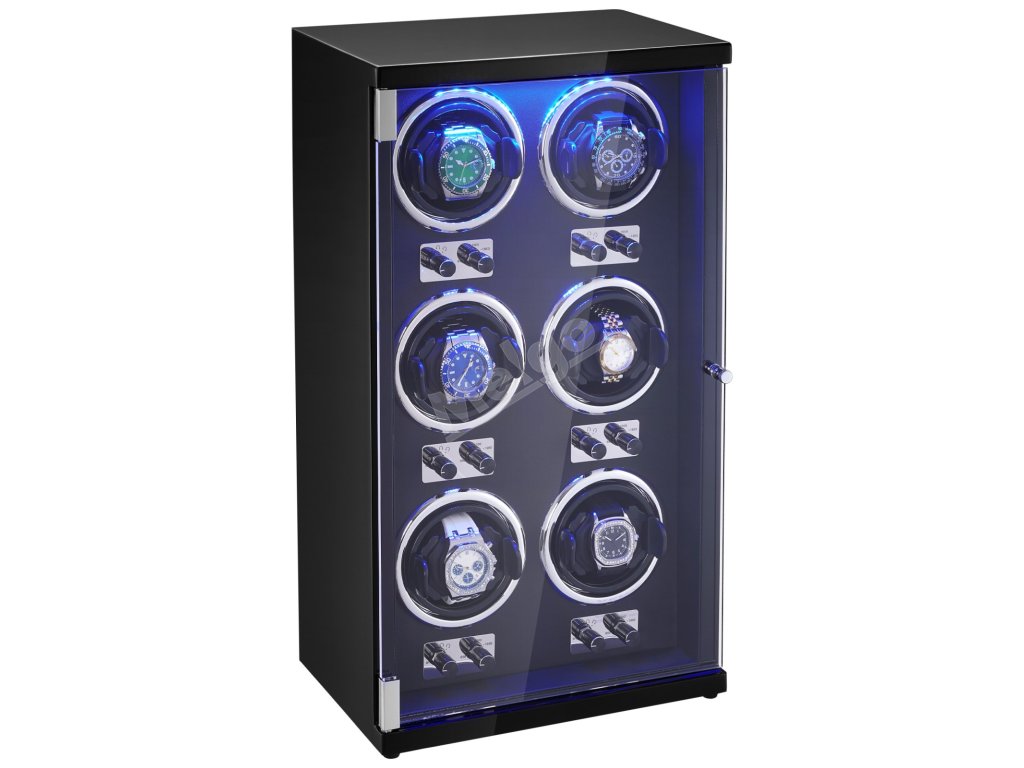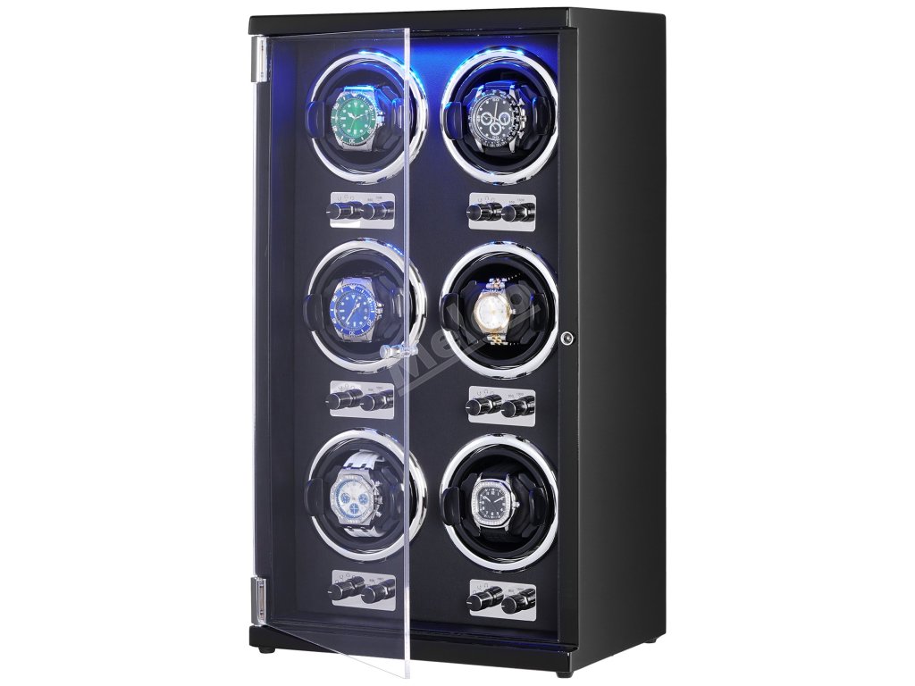 Navíječ pro 6 hodinek, japonské motory, modré led, černé pu