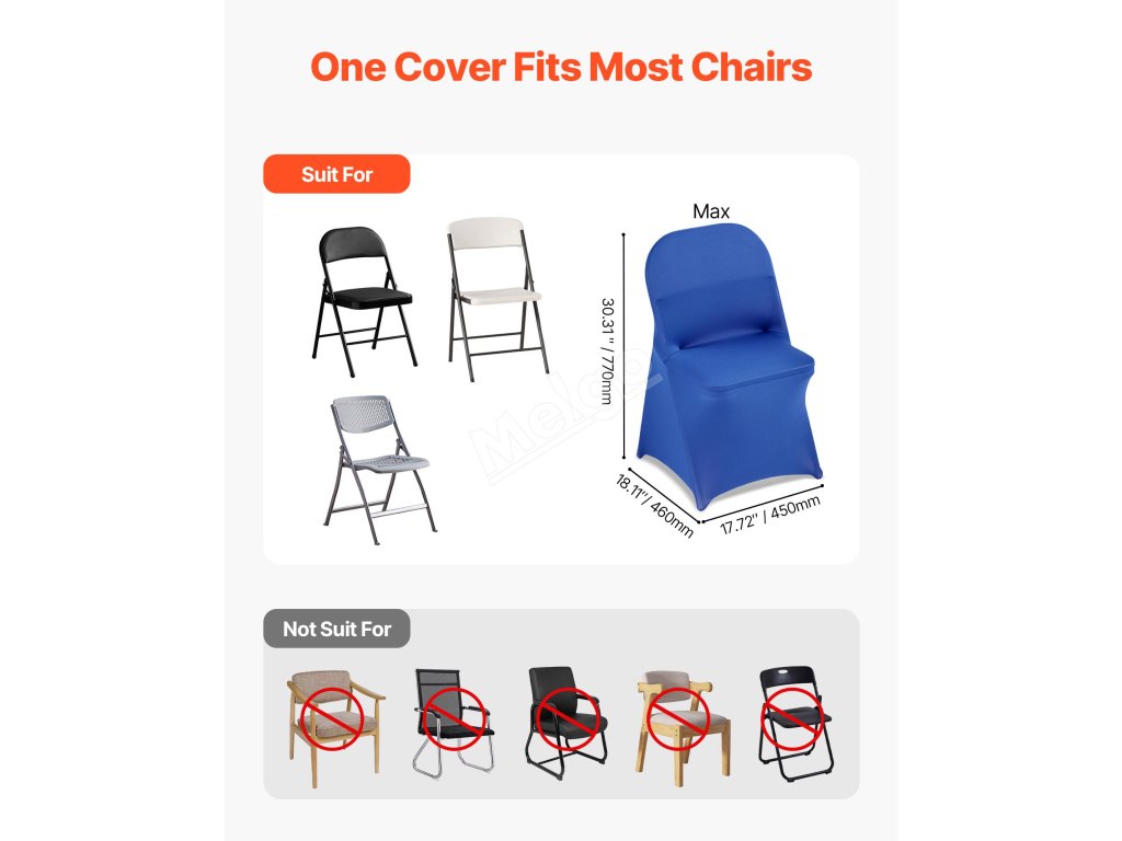 Návleky na židle 50ks modré spandex do 17.72×18.11×30.31 inch