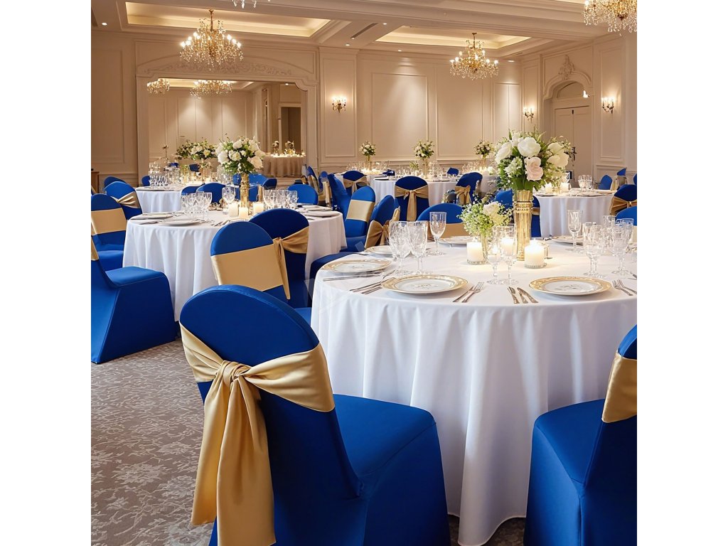 Tato elegantní sada potahů na banketové židle je vyrobena z vysoce kvalitní strečové spandexové tkaniny a zvýrazní jednotný vzhled vašich židlí. Je ideální pro svatby, promoce, narozeniny a další zvláštní příležitosti a dodá každé události nádech sofistikovanosti a stylu.