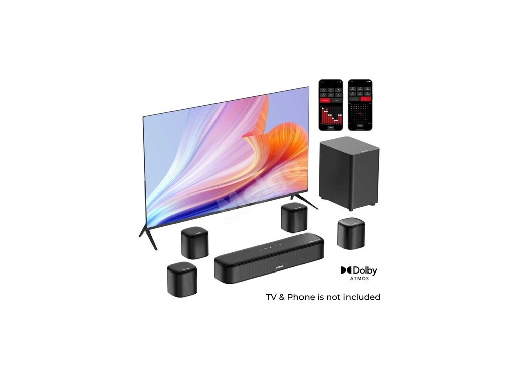 Dolby Atmos vytváří pohlcující 3D zvukovou krajinu: Tento 7.1kanálový soundbar Dolby Atmos posune váš zvukový zážitek na vyšší úroveň tím, že nabízí 3D zvuk, který proudí všude kolem vás a pozvedne vaše domácí kino díky bohatému, dynamickému zvuku, který činí každou scénu živější a pohlcující.