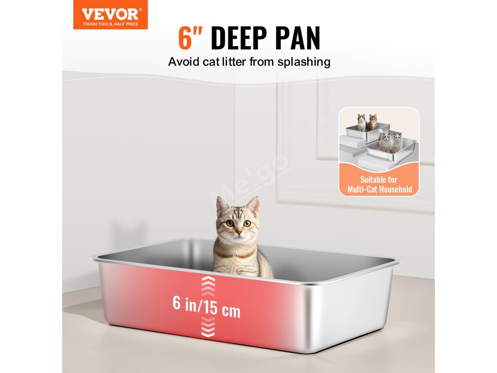 Nerezová krytá kočičí toaleta xl, 6 inches hluboká, s vysokými boky