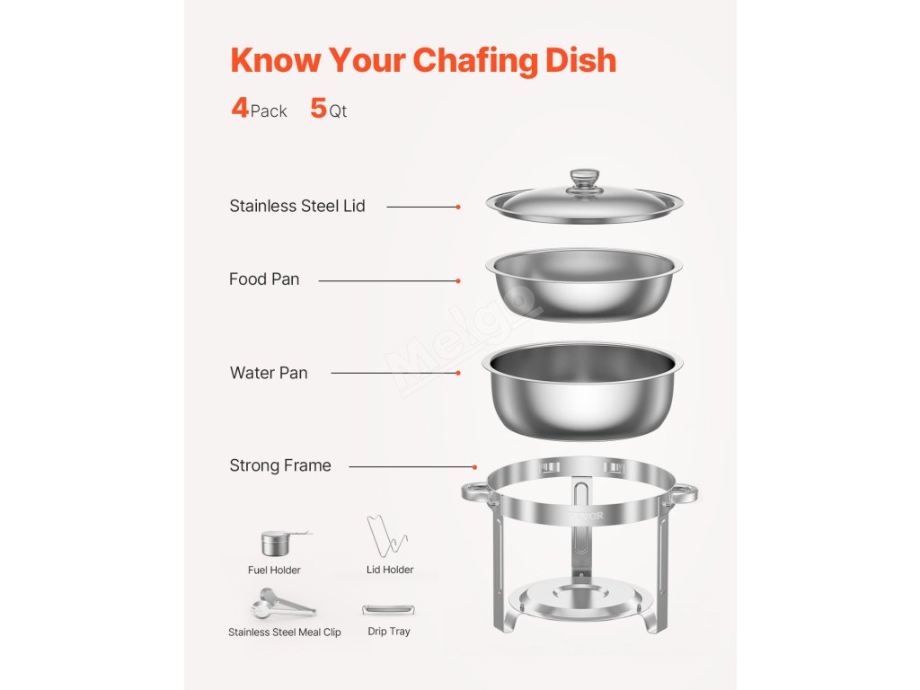 Nerezová sada chafing dish 4 ks 5 qt, 4 full size pánve, stojan