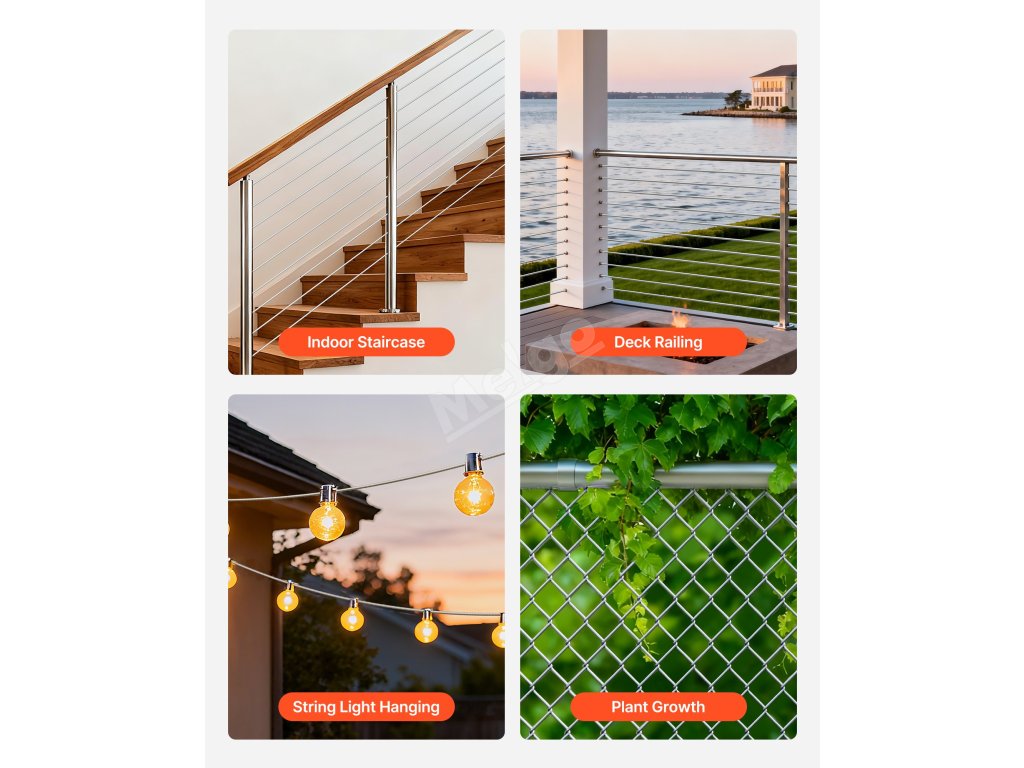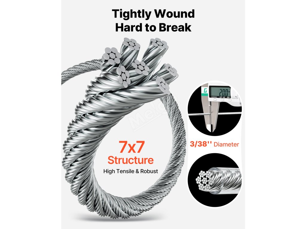 Tento prvotřídní kabel 7x7 z nerezové oceli 304 s PVC pláštěm nabízí vysokou odolnost proti korozi a je vhodný pro vnitřní i venkovní projekty. Použijte jej pro zábradlí, ploty, mříže a řetězové osvětlení - je ideální pro majitele domů, zahradníky a kutily, kteří chtějí bezpečné, odolné a efektivní instalace.