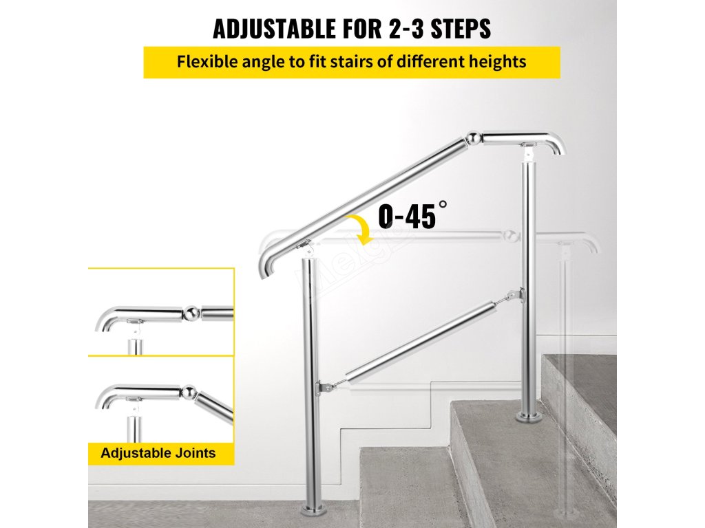 Nerezové zábradlí na 1-3 schody, nastavitelné, 99.8 kg, s montáží