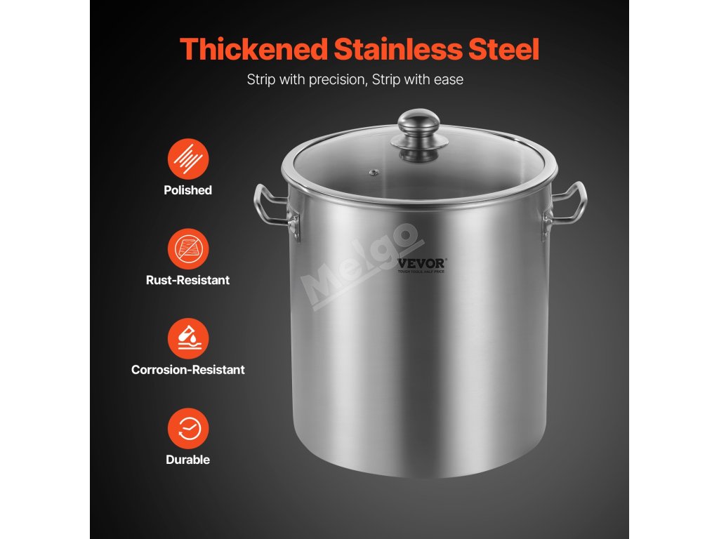 Hrnec na vývar, který je celý vyroben z vysoce kvalitního nerezového materiálu, má vynikající tepelnou odolnost a odolnost proti korozi, což zaručuje dlouhou životnost při dušení při vysoké teplotě a vaření kyselých surovin!