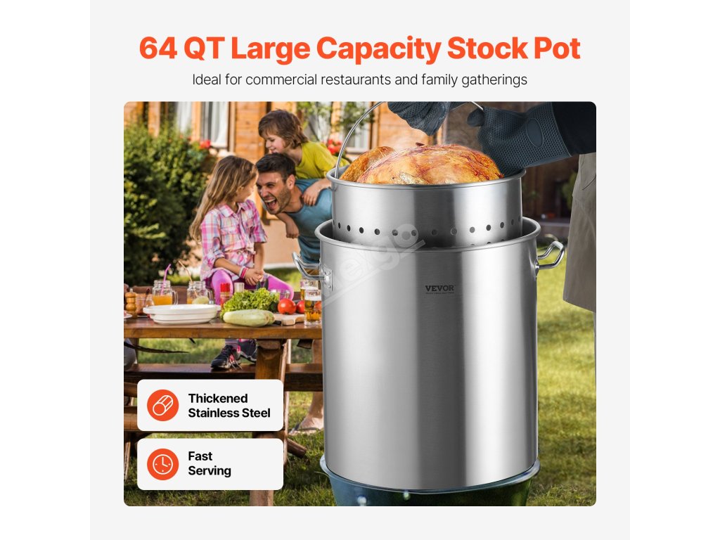 V hrnci na omáčku o objemu 54 litrů lze vařit značné množství surovin najednou, takže je vhodný pro komerční použití v kuchyni i pro rodinné oslavy! Ideální pro dušení, přípravu polévek, vaření v páře a smažení!