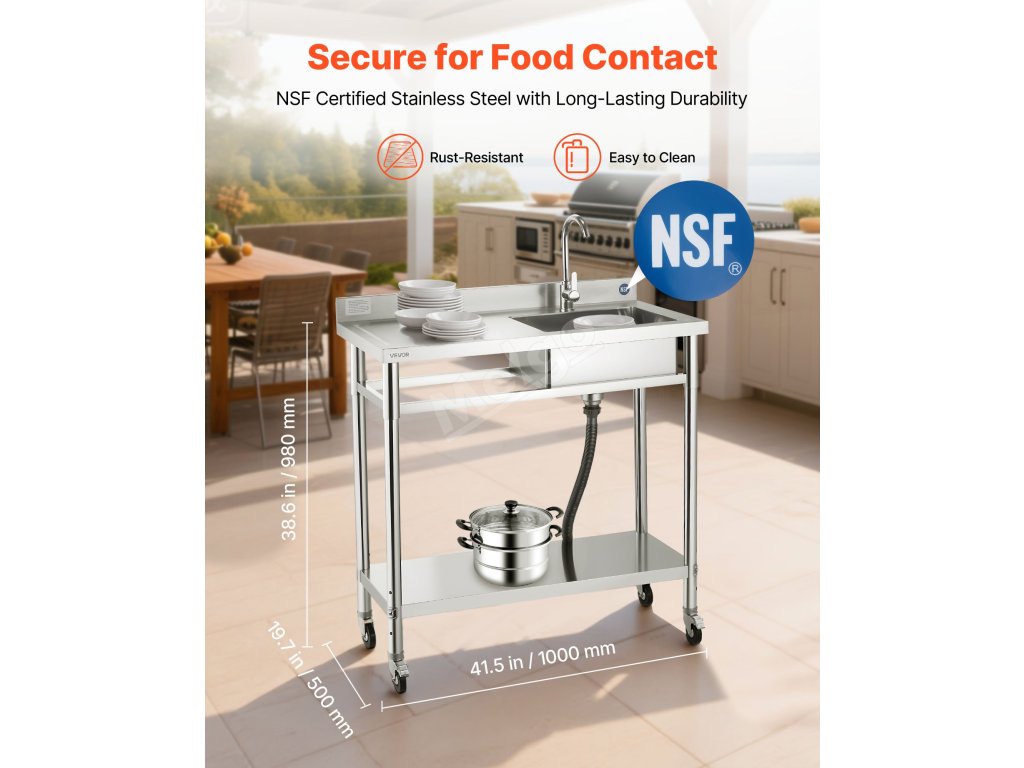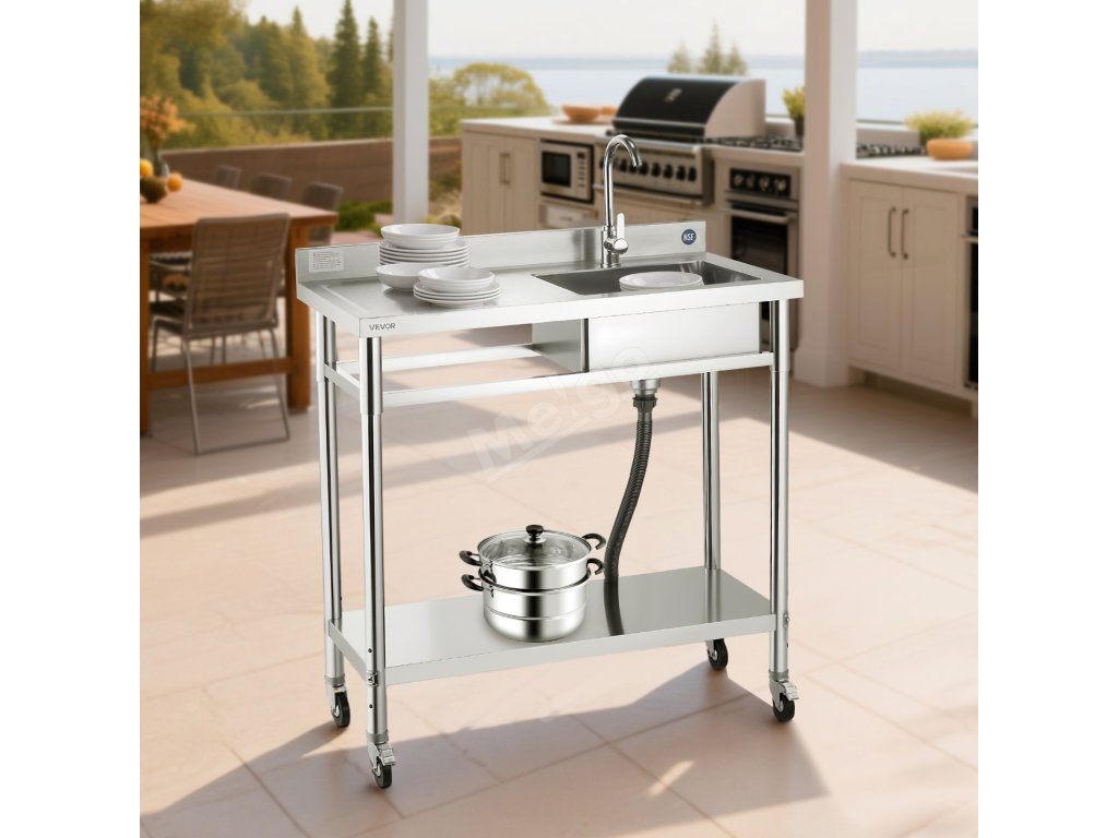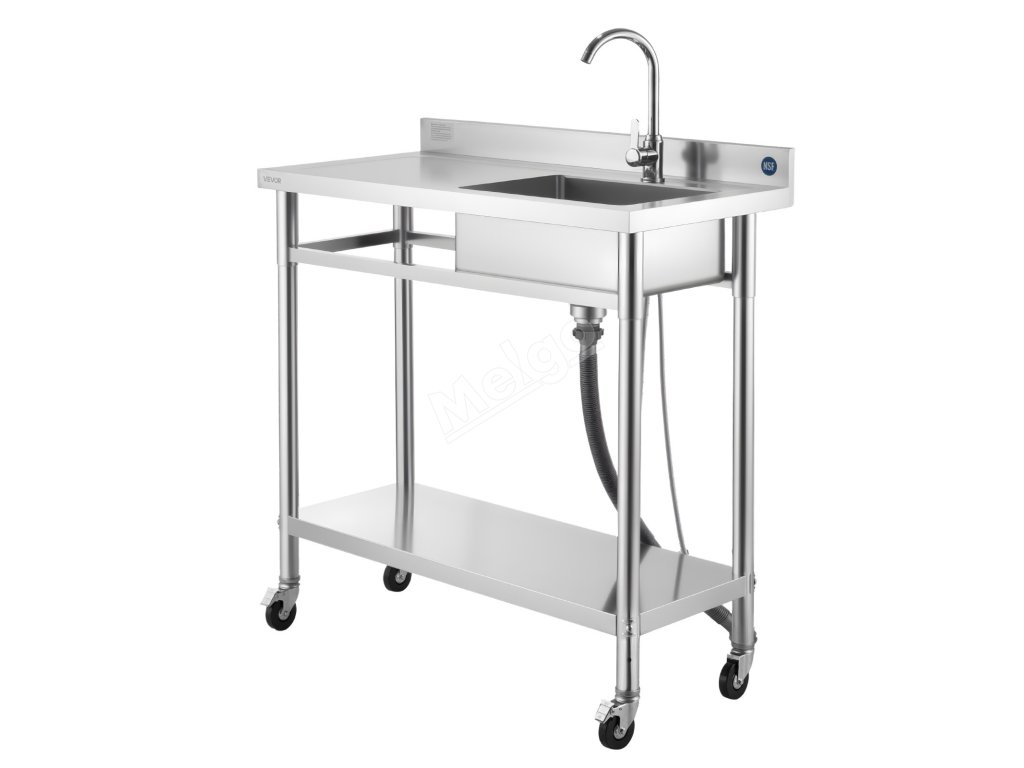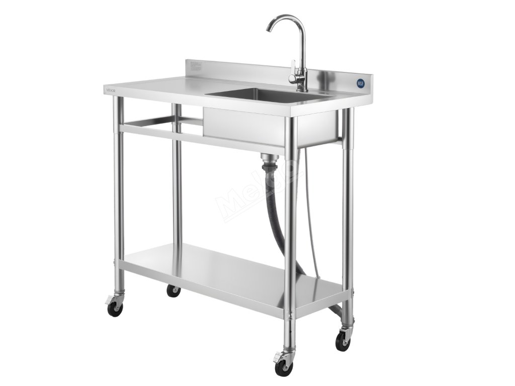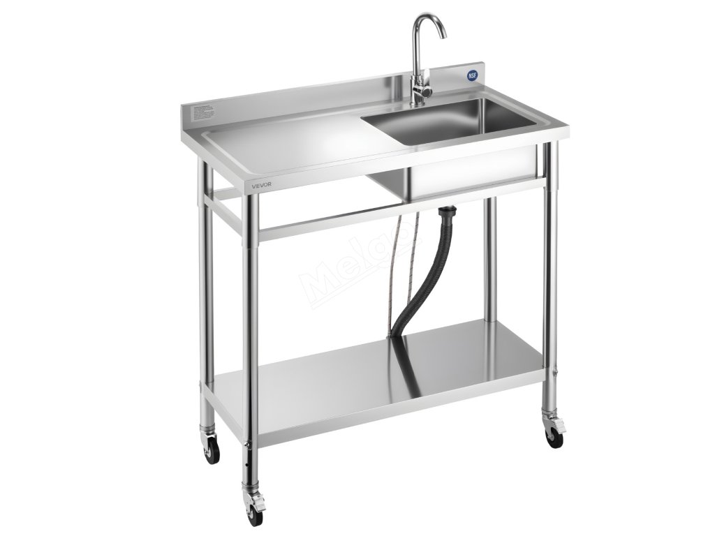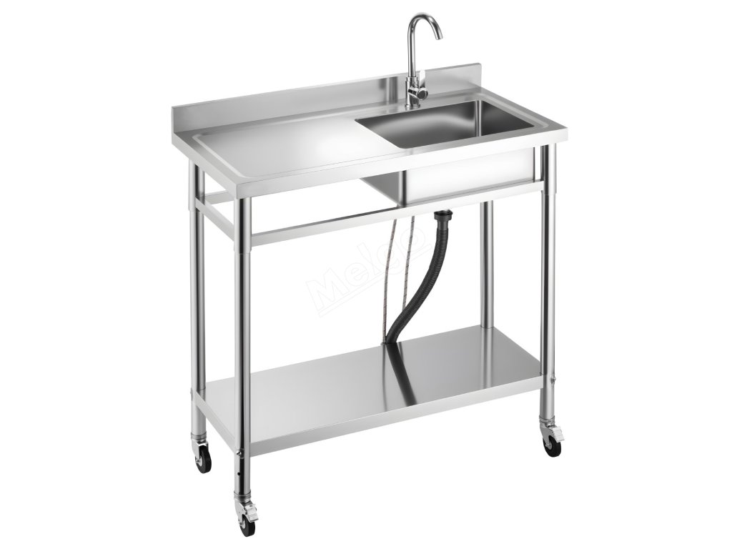 Nerezový jednokomorový dřez s kolečky a baterií 1000×500×1055mm