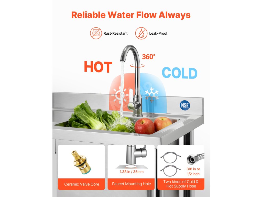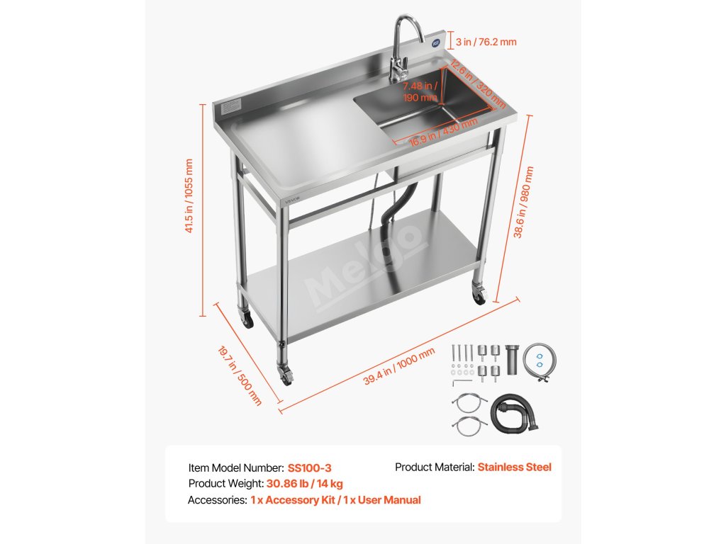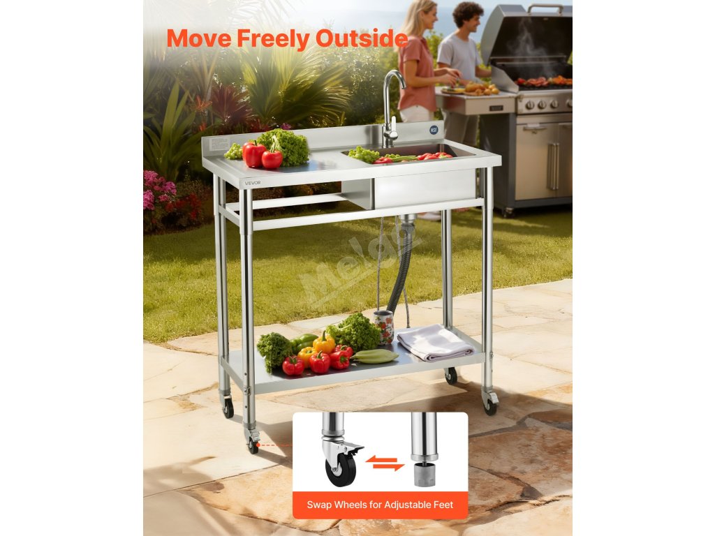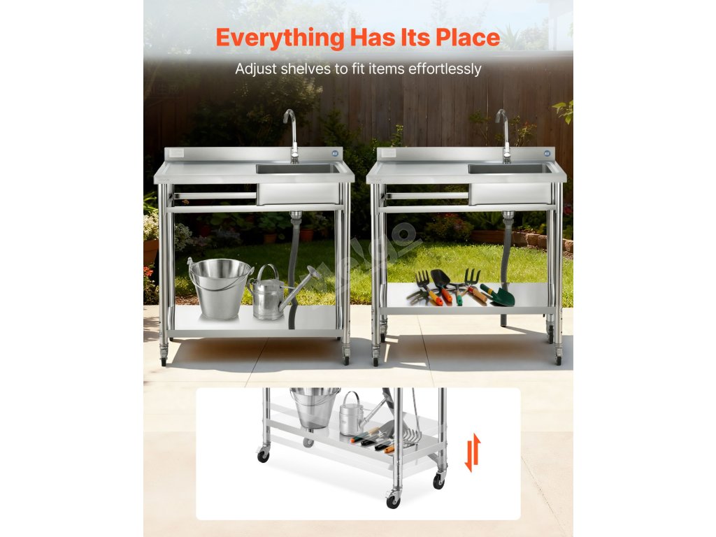 Konstrukce "vše v jednom" kombinuje pracovní desku, dřez a nastavitelnou odkládací polici, takže mytí a organizace jsou snadné. Prostorný dřez si poradí s různými úklidovými úkoly, zatímco nastavitelné spodní police poskytují flexibilní úložný prostor pro různé předměty, takže se snadno přizpůsobí různým scénářům.